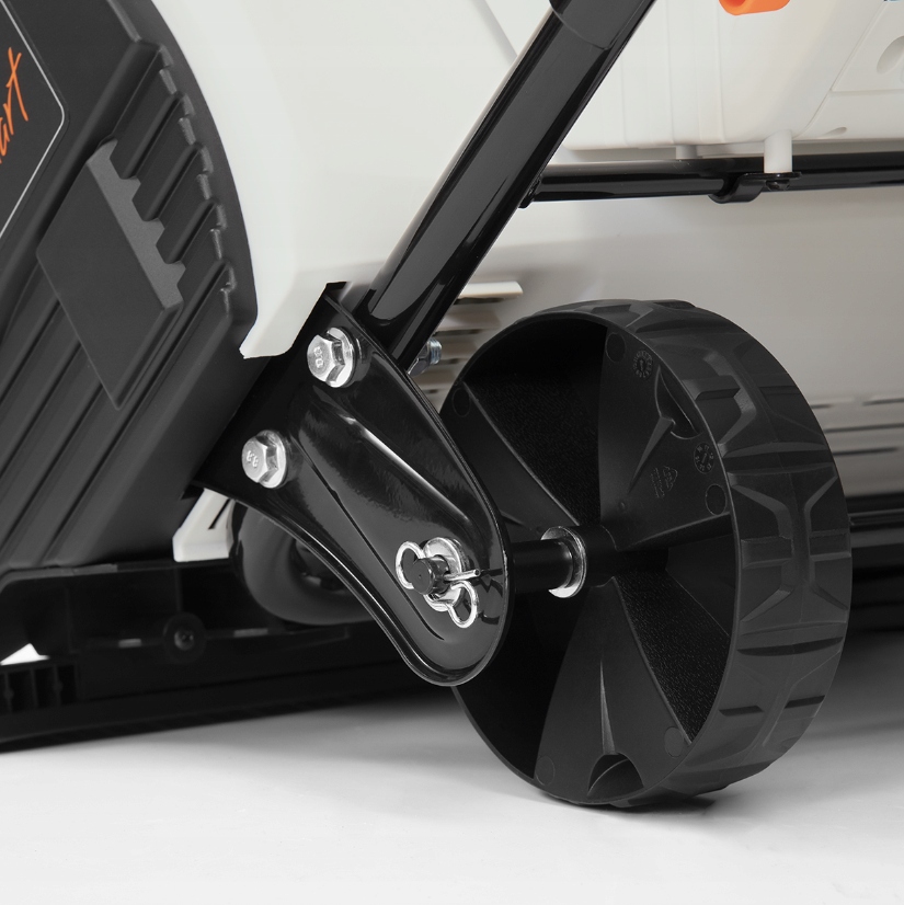 Аккумуляторный снегоуборщик с системой привода GRAB&GO, отвечающий за сбор снега и перемещение устройства.