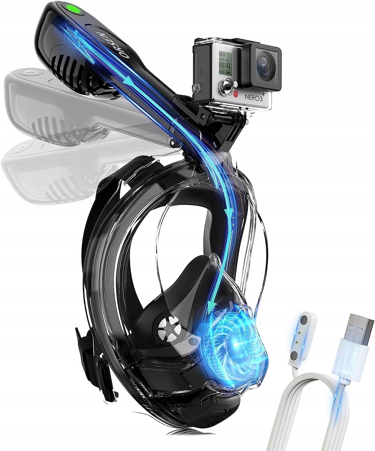 - Электрическая дыхательная система без усилий - откройте для себя революционную маску с полным времени Orsen, оснащенная запатентованной системой обновления электрического воздуха, которая обеспечивает легкое дыхание при дайвинге с трубкой. Батарея питает вентилятор, который увеличивает крышку и выпускает в 5 раз быстрее, чем традиционные маски. Дышите без усилий, как на суше благодаря этому революционному дайвинговому оборудованию.