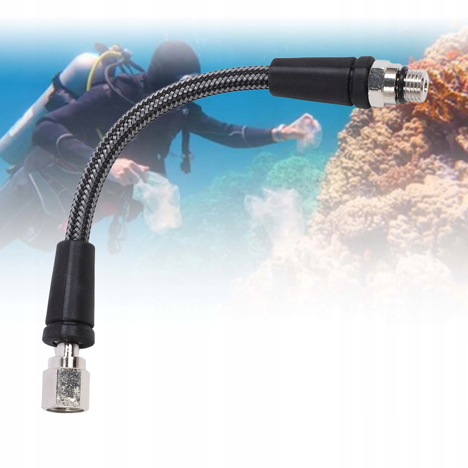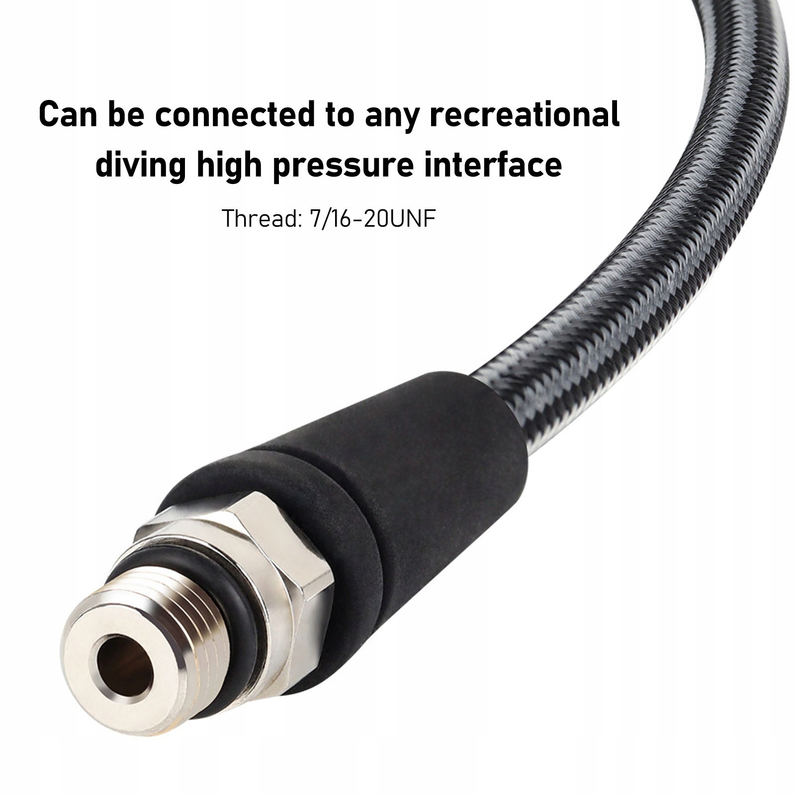 1. Шланг высокого давления: изготовлен из материала из углеродного волокна, это высокое давление обеспечивает превосходную сопротивление давлению и долговечности, обеспечивая безопасность во время длительных сессий дайвинга