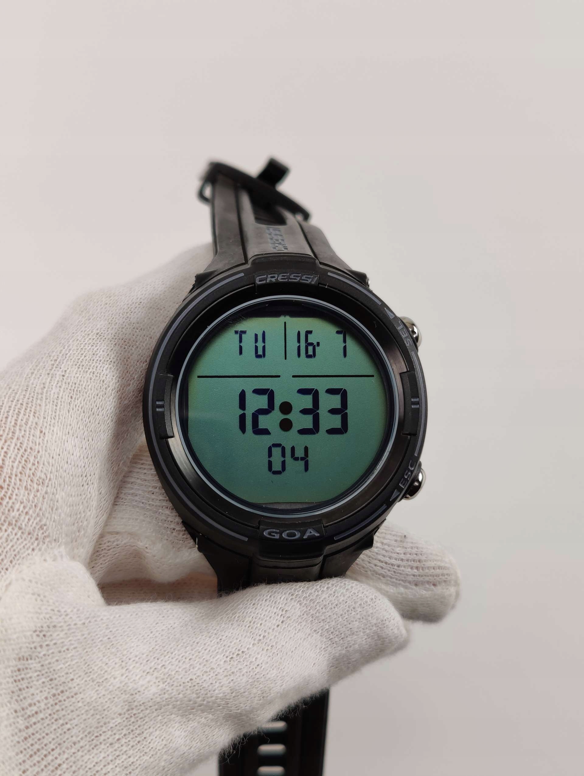 GOA — наручный компьютер для дайвинга при АРА и небольших апноэ, отличающийся отличной читаемостью и яркостью. Он имеет диаметр всего 48 мм и контрастность дисплея 35 мм. Гоа выдерживает глубину воды до 120 м (12 атм). Очень тонкий дизайн. Резиновая манжета и пряжка из нержавеющей стали.