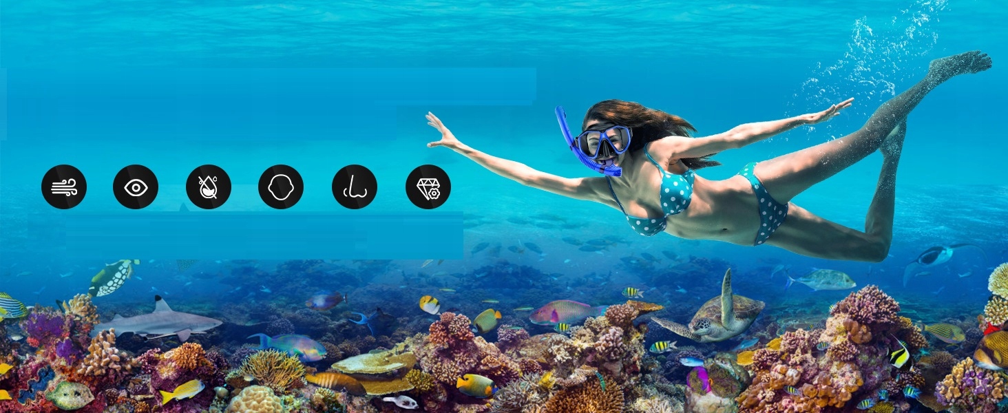 Прочные и ударопрочные линзы с высоким разрешением и защитой от запотевания, которые эффективно предотвращают запотевание. Благодаря панорамному обзору на 180° вы сможете насладиться прекрасным подводным приключением. Это отличный вариант насладиться исследованием подводного мира.