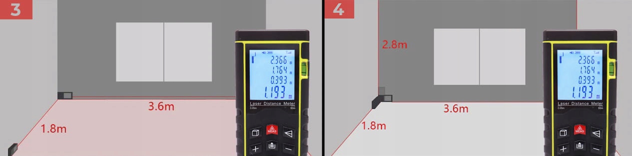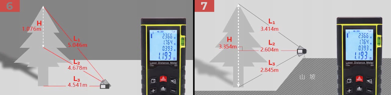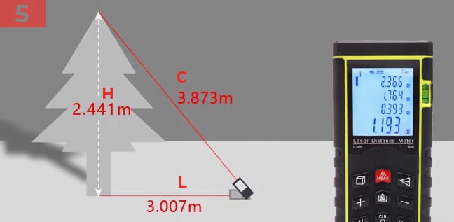 Длямский аппарат обеспечивает измерение, используя теорему pythagoras b> тремя способами (5) (6) (7). Эта функция полезна, когда мы хотим измерить место, трудности для доступа, или которое мы не можем измерить с помощью обычного счетчика. «5» h2>
