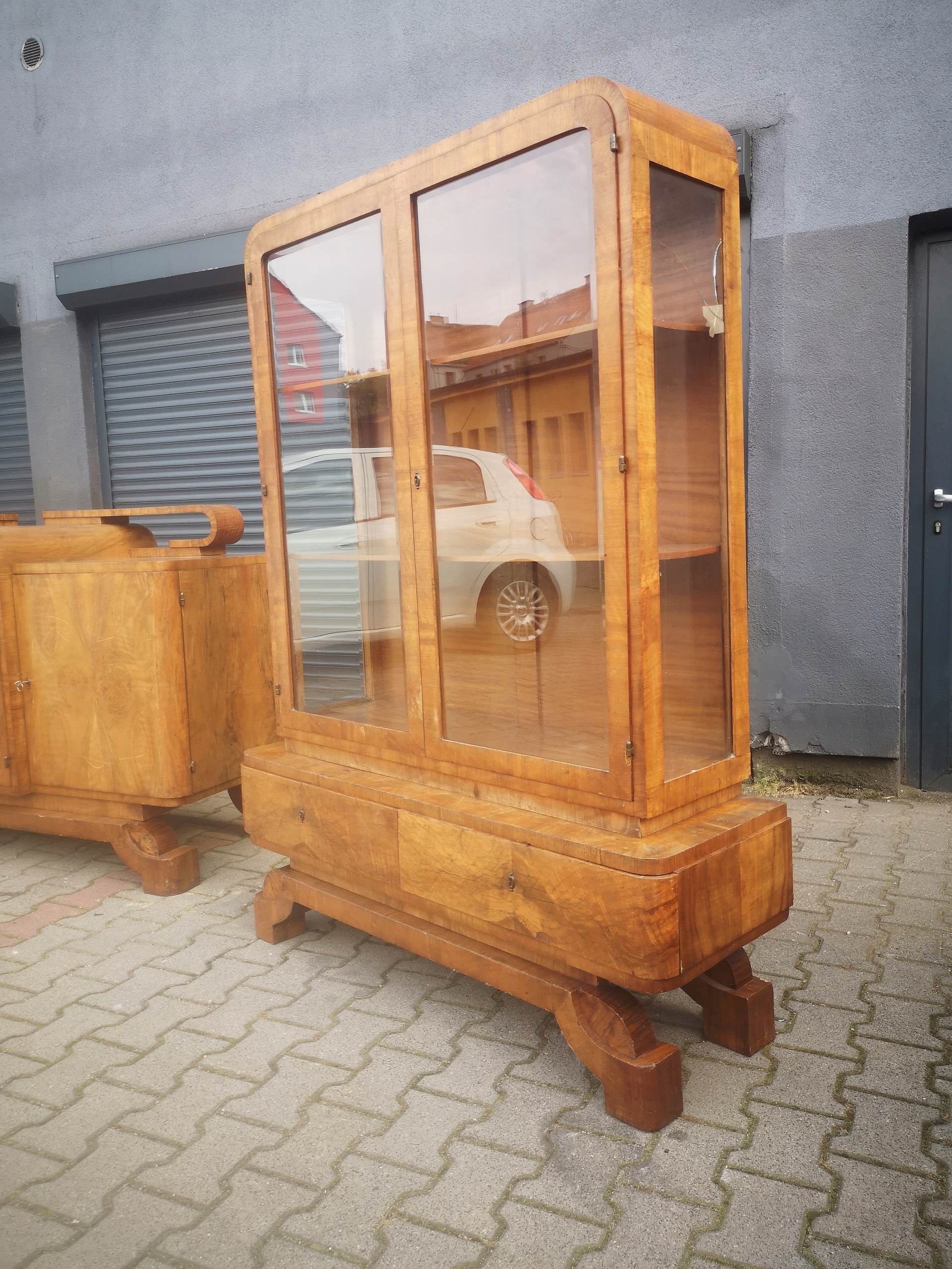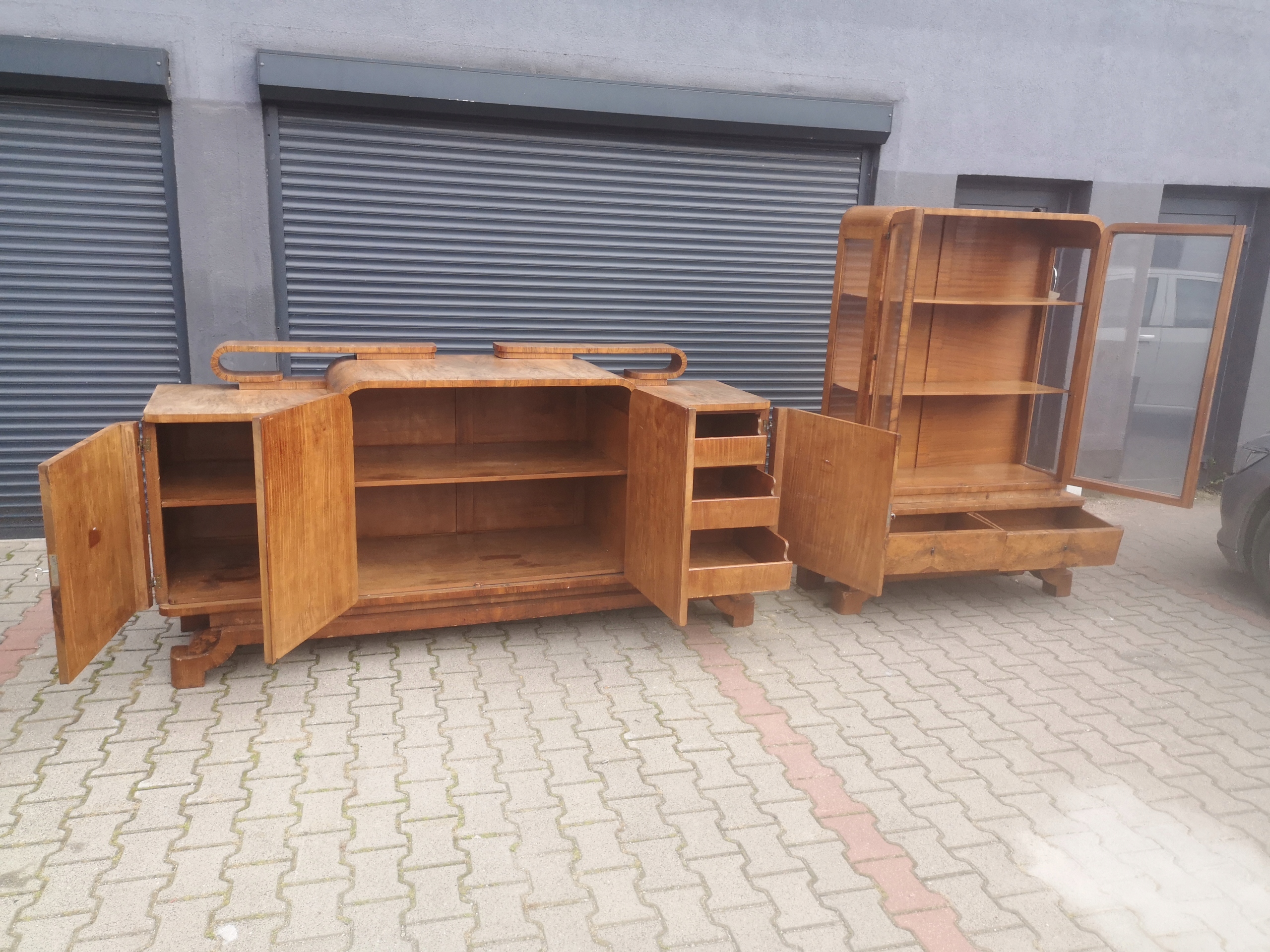 Столовая, буфет и витрина, польский арт-деко из Кракова, шпон ореха