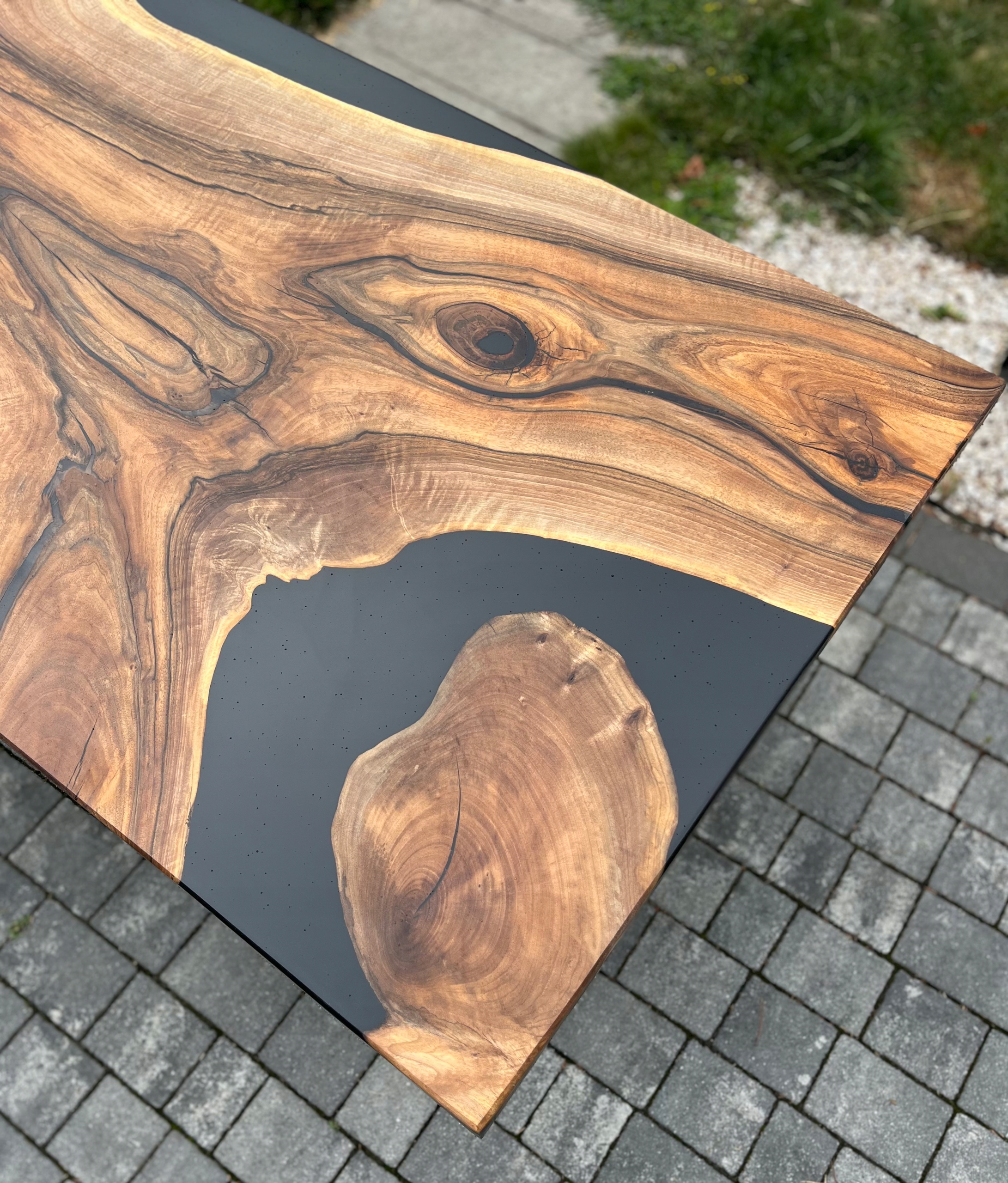 Мы рады представить нашу эксклюзивную таблицу, сделанную из грецких орехов высочайшего качества, обогащенными элегантными прелести эпоксидной смолы. Эта уникальная композиция идеально вписывается в различные интерьеры, внедряя для них теплую и необычную атмосферу. CM, верхняя толщина 6 см