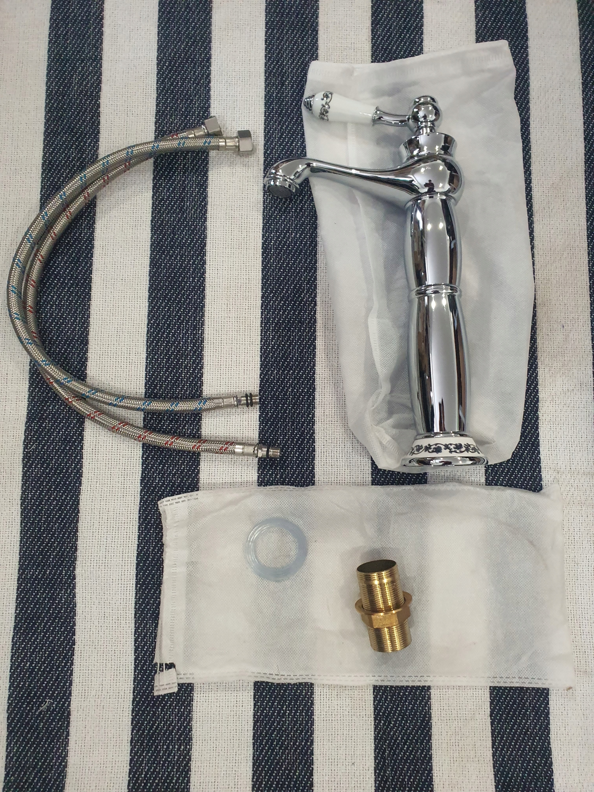 - Включите 1 x Tap, 2 x шланг и элемент сборки для установки.