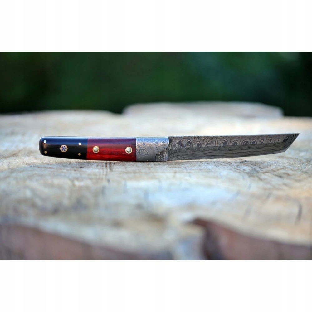 Нож с дамасским лезвием и деревянной ручкой из падук и черного дерева