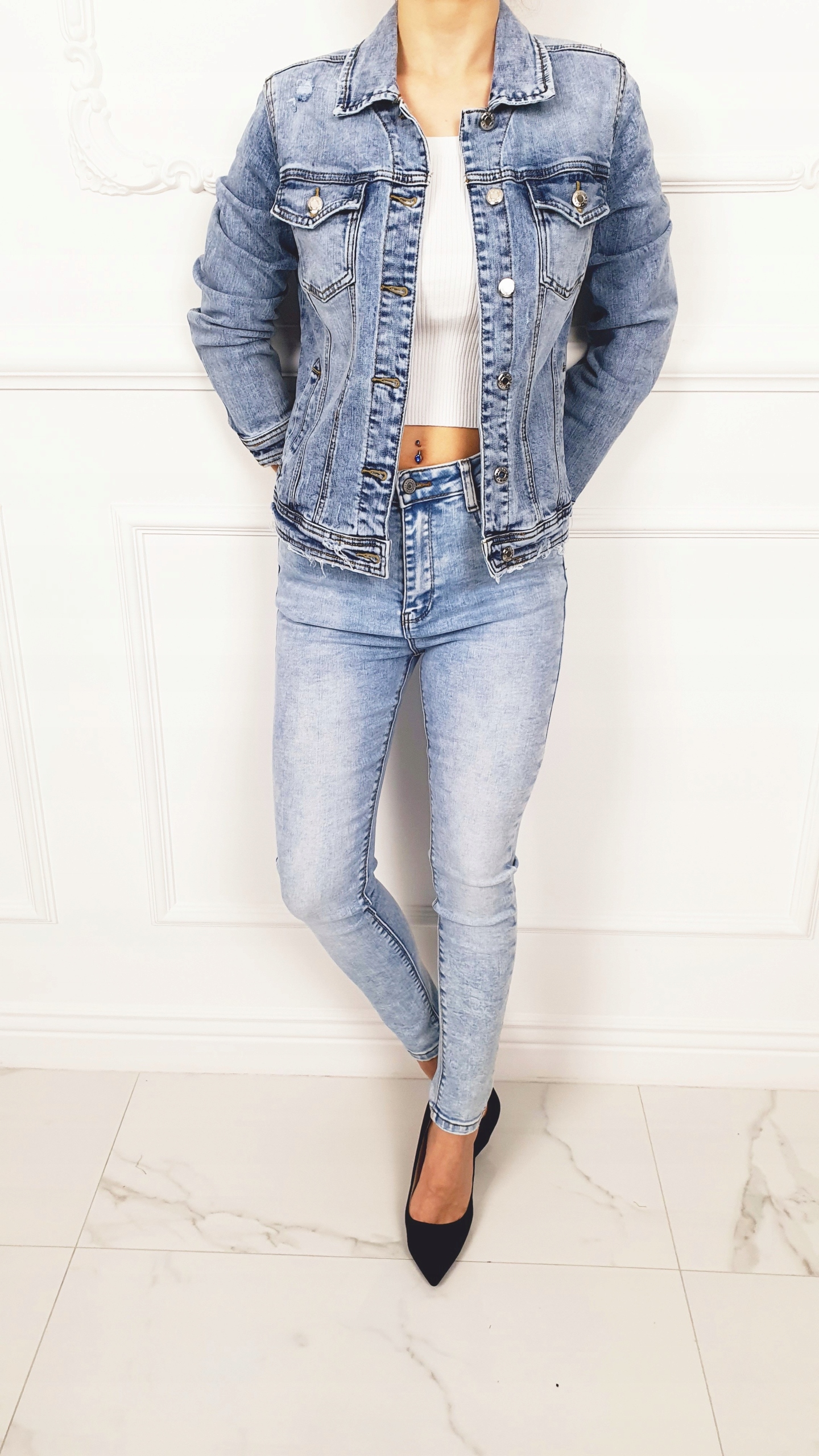 Классическая джинсовая куртка с потертостями, может использовать с любым стилем, как с классическими джинсами и белой футболкой для повседневных выходов, так и с женскими платьями, придавая им роковый характер. Он обязательно должен быть в каждом гардеробе!