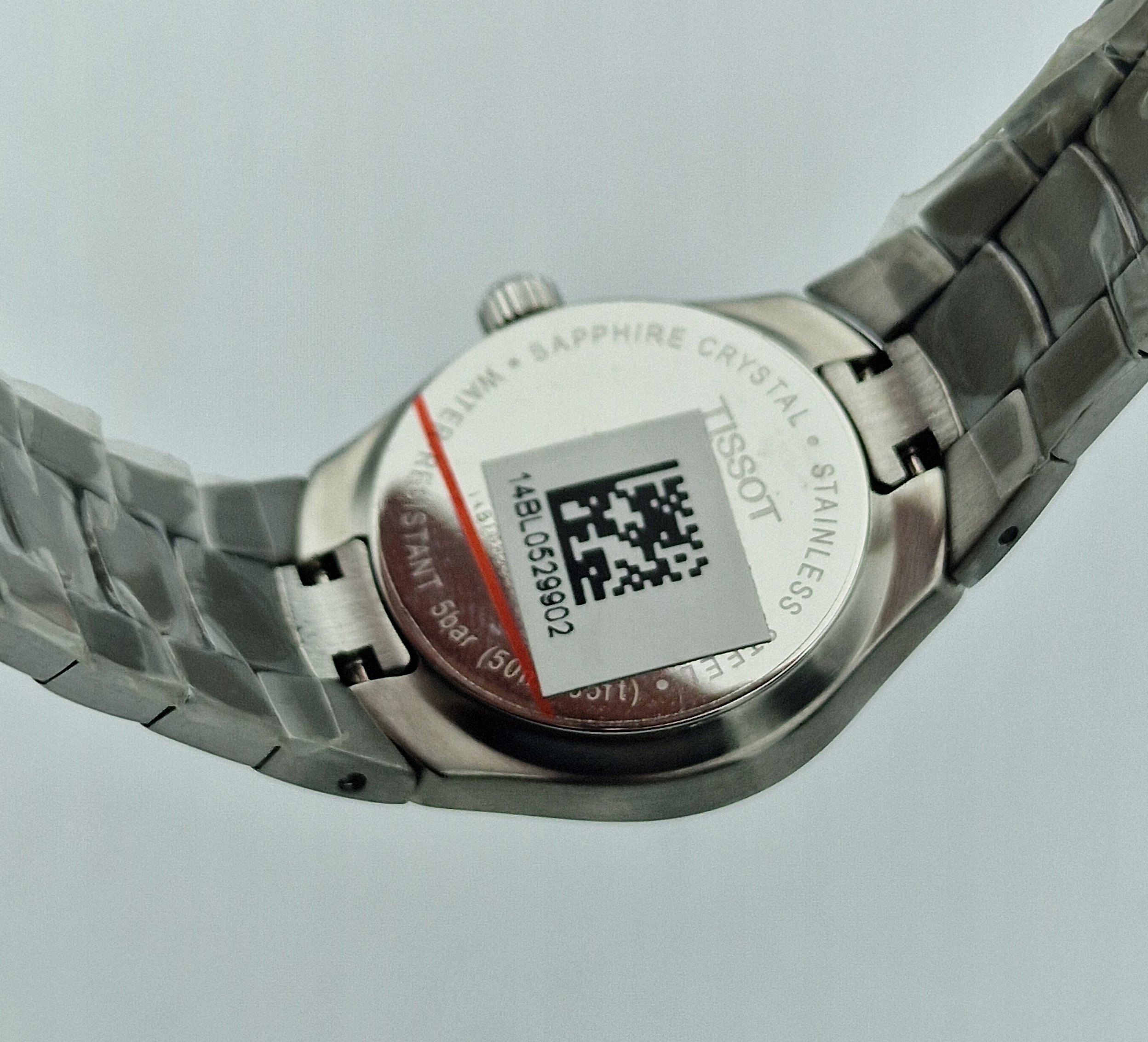 - Стальной конверт. Зажимная задняя крышка, подпись: «НЕРЖАВЕЮЩАЯ СТАЛЬ, ВОДОНЕПРОНИЦАЕМОСТЬ 5 БАР (50 М), TISSOT, САПФИР КРИСТАЛЛ». Оригинальное кружево в идеальном состоянии. Конверт в идеальном состоянии, как показано на фотографиях.