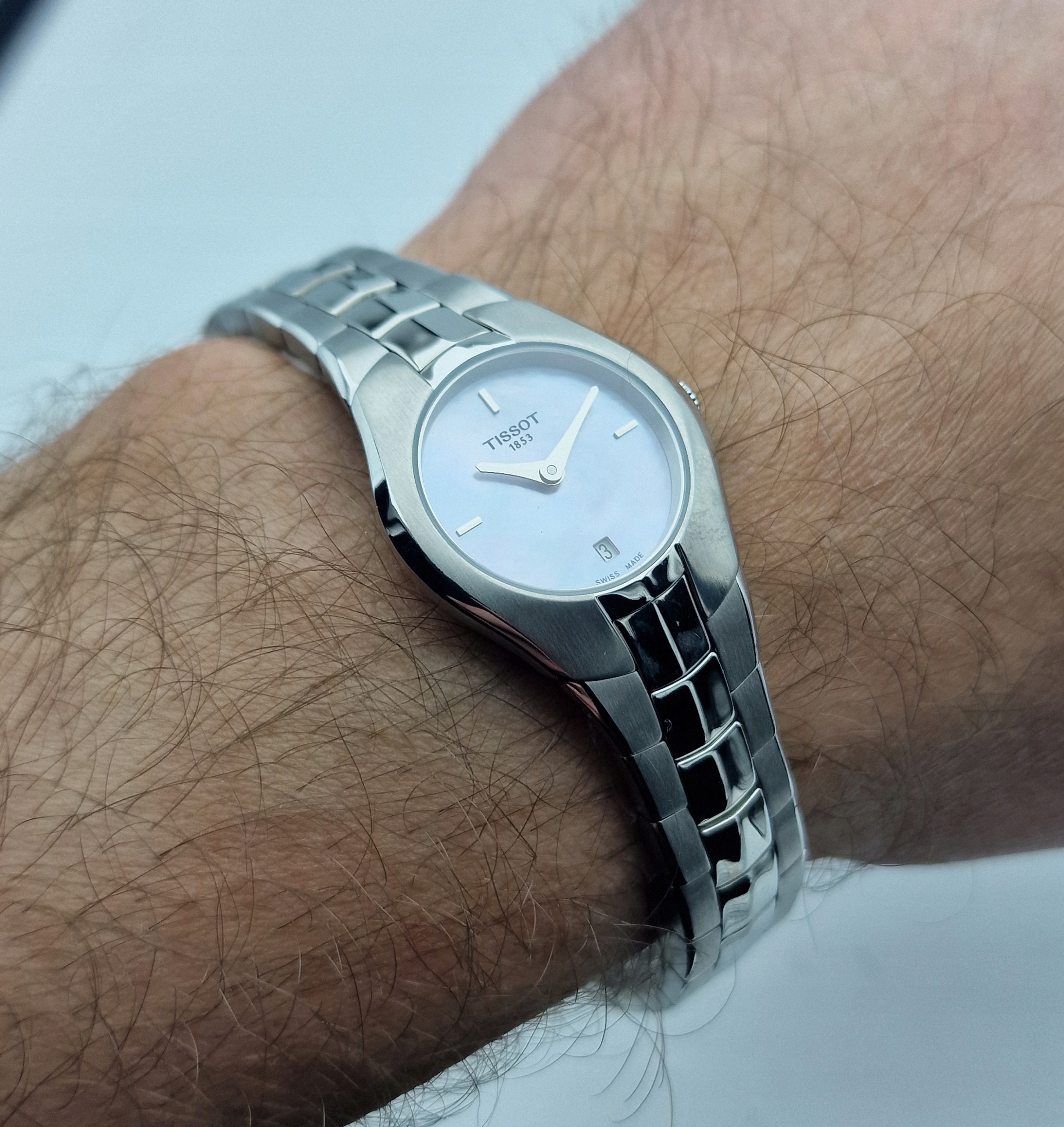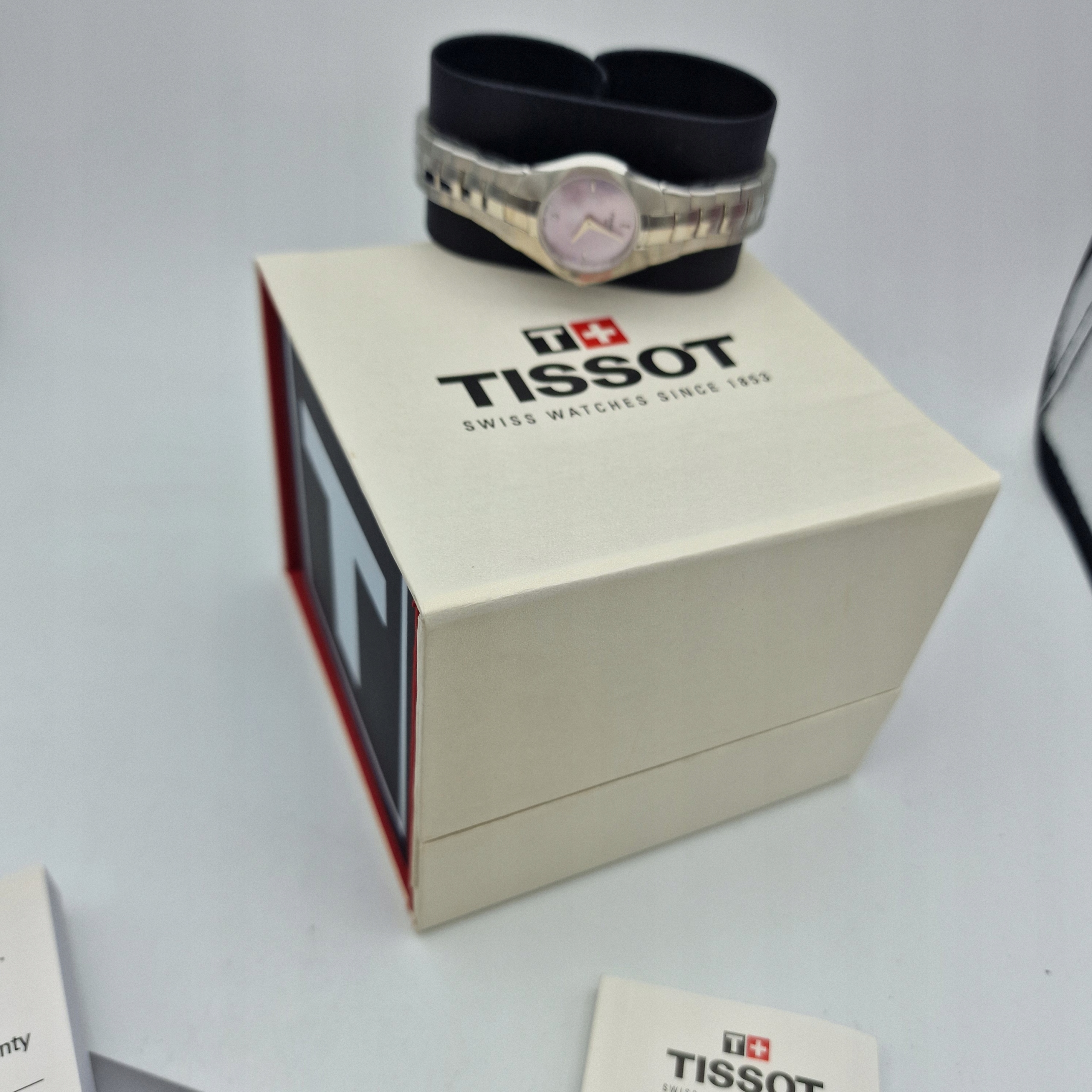 - Циферблат полностью выполнен из перламутра. Оригинальный циферблат с подписью: «TISSOT 1853, SWISS MADE». Циферблат в идеальном состоянии, видно на фотографиях.