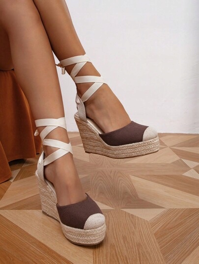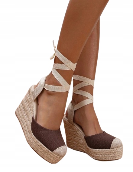 DAMSKIE ESPADRYLE NA KOTURNIE WIĄZANE BRĄZ 35 1ŁHB