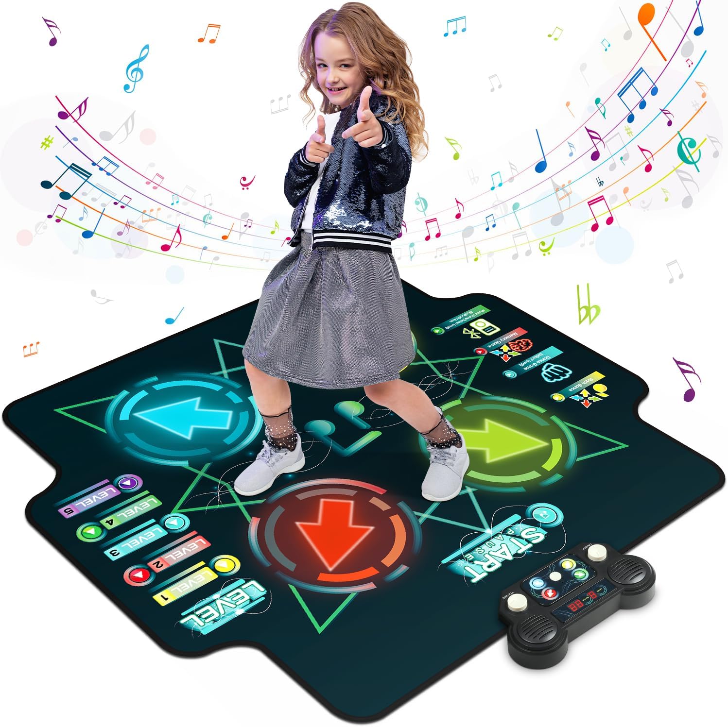 【Прочный и безопасный】Музыкальный танцевальный коврик изготовлен из прочного винилового материала, нетоксичного, мягкого подушечки, легко чистится. Он достаточно прочный, чтобы вся семья могла танцевать и прыгать. Танцевальный коврик Lights Up способствует здоровому развитию детей.