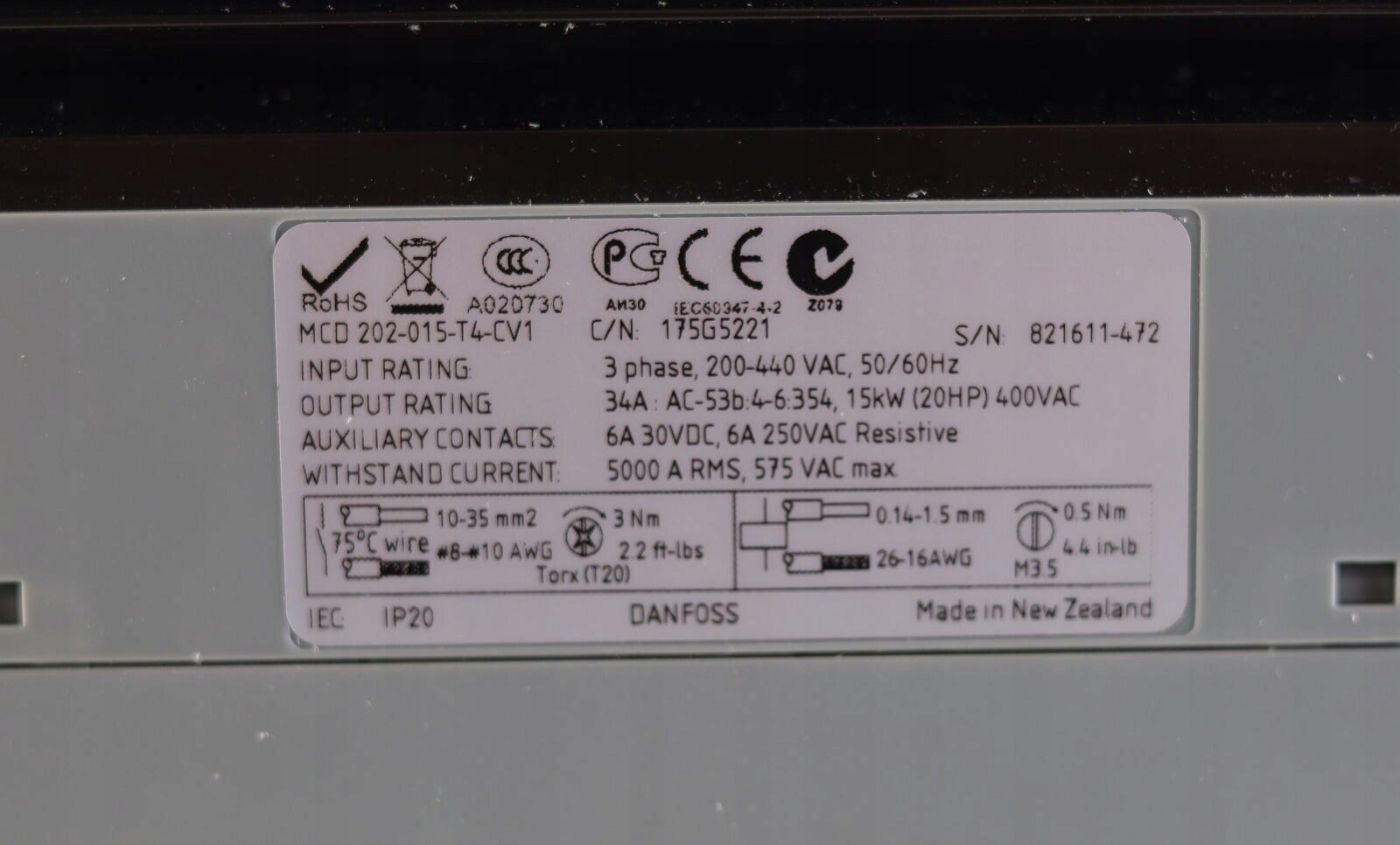 DANFOSS MCD 202-015-T4-CV1 175G5221 MCD202015T4CV1