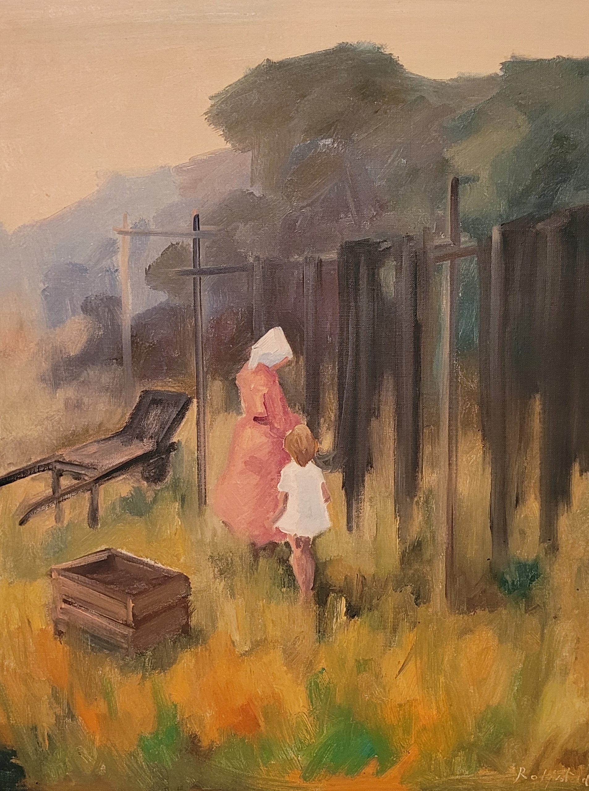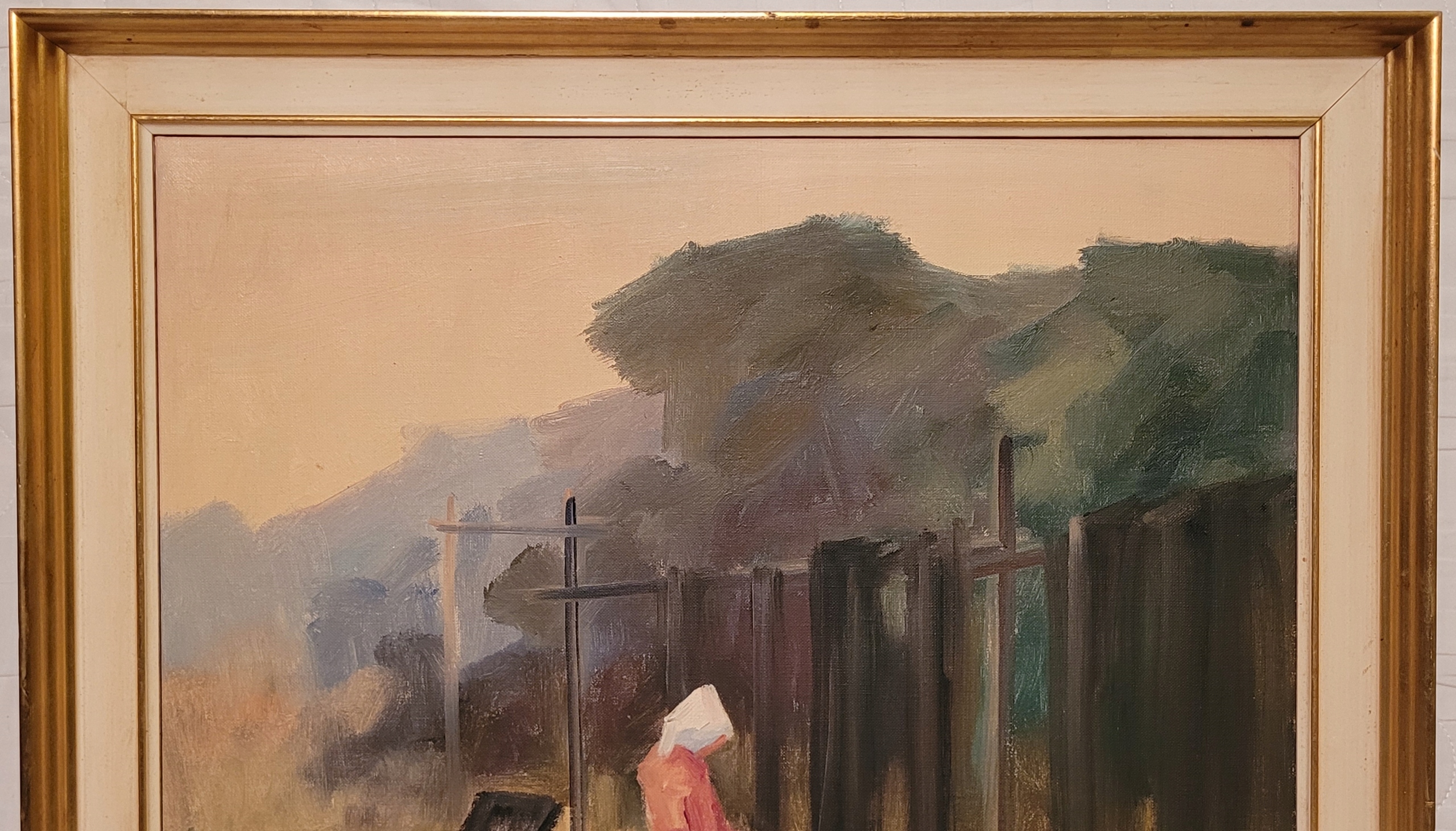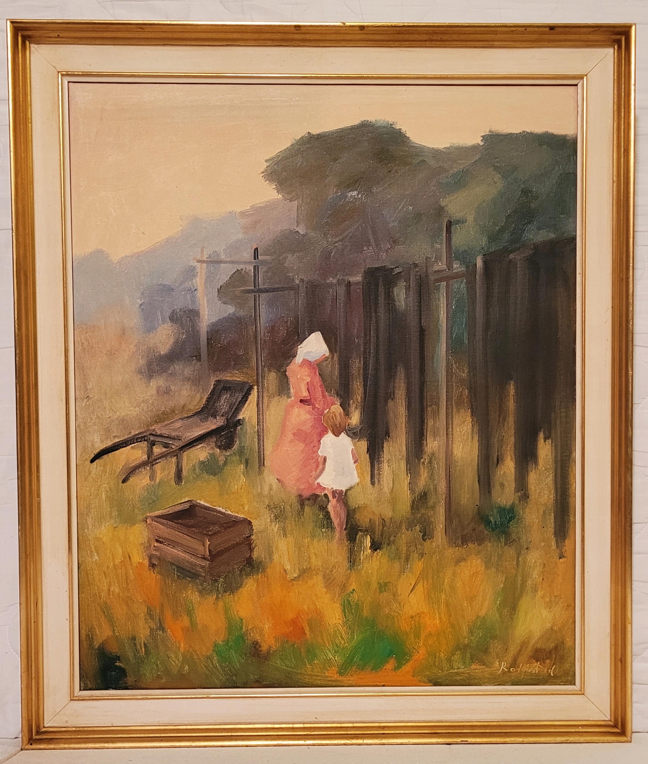 ДЭНИЭЛ БЕРНХАРДТ РОЛЬФСТЕД ( 1905 - ) - "СЦЕНА НА ДВОРИКЕ", картина маслом.