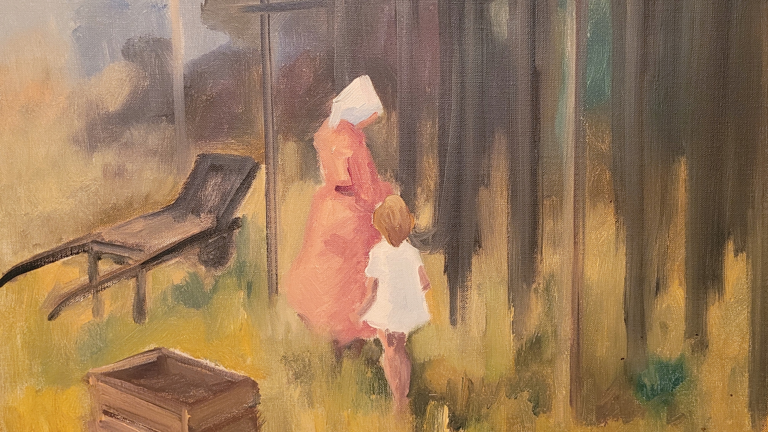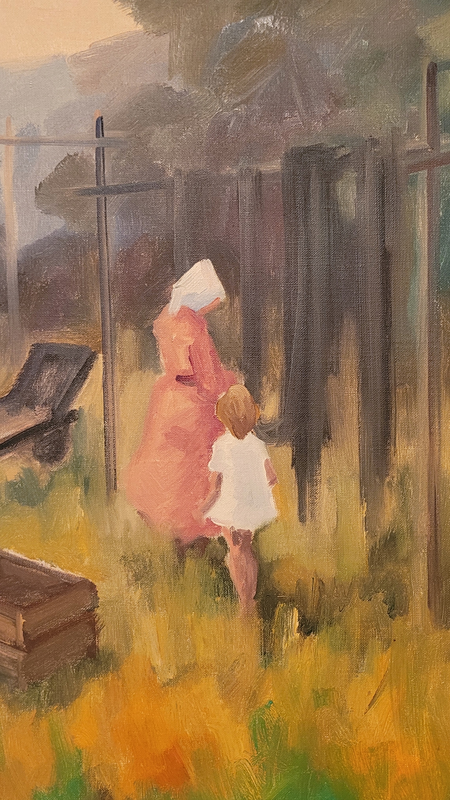 Предмет продажи - красивая, старинная картина маслом "СЦЕНА НА ДВОРУ".