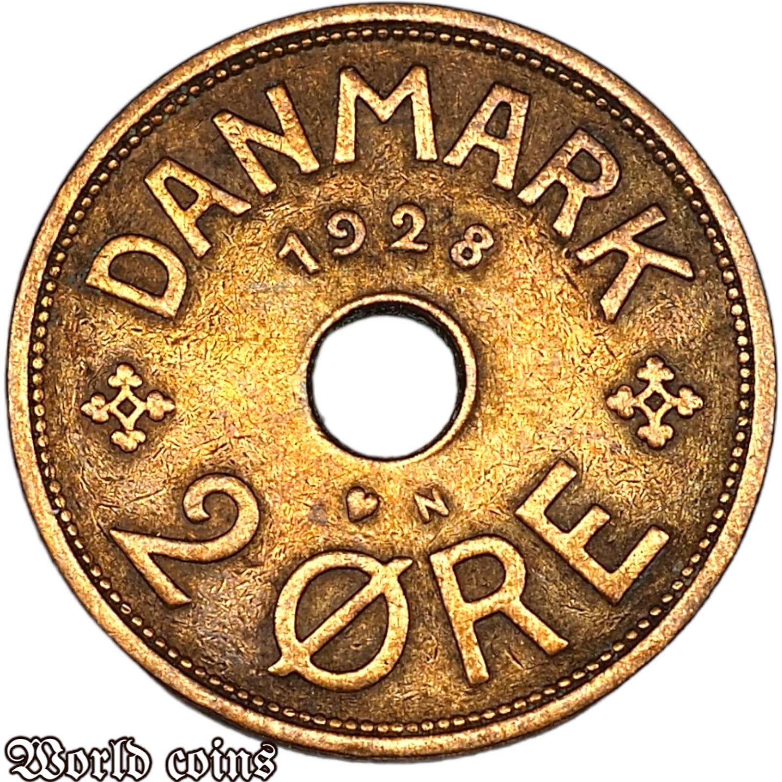 Монеты 2 ORE из Дании, годы чеканки 1926 - 1940.