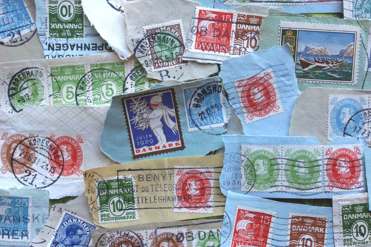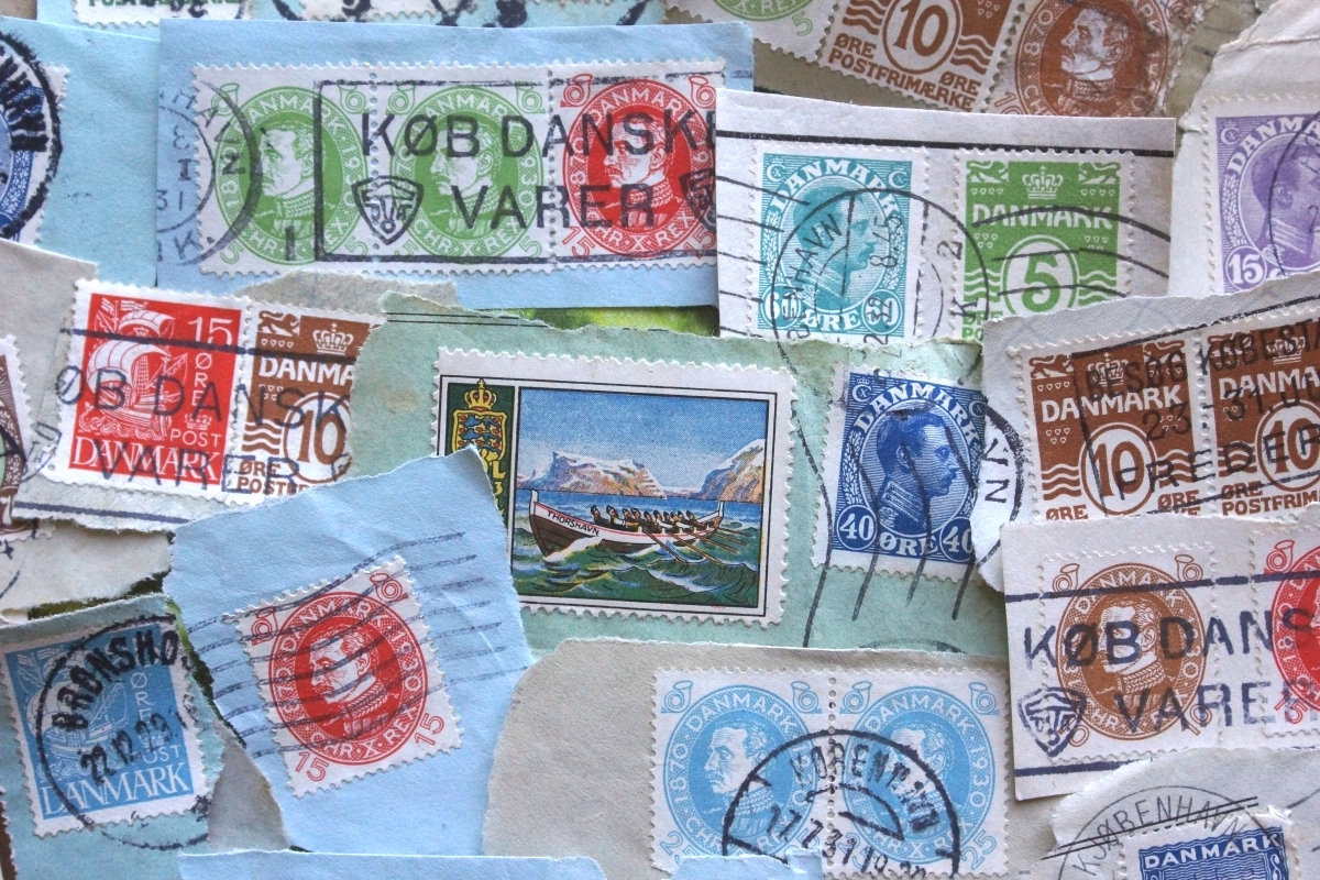 ДАНІЯ - ЦІКАВА КОЛЕКЦІЯ МАРОК НА ВРИЗКАХ - 1920-1930-ті рр.