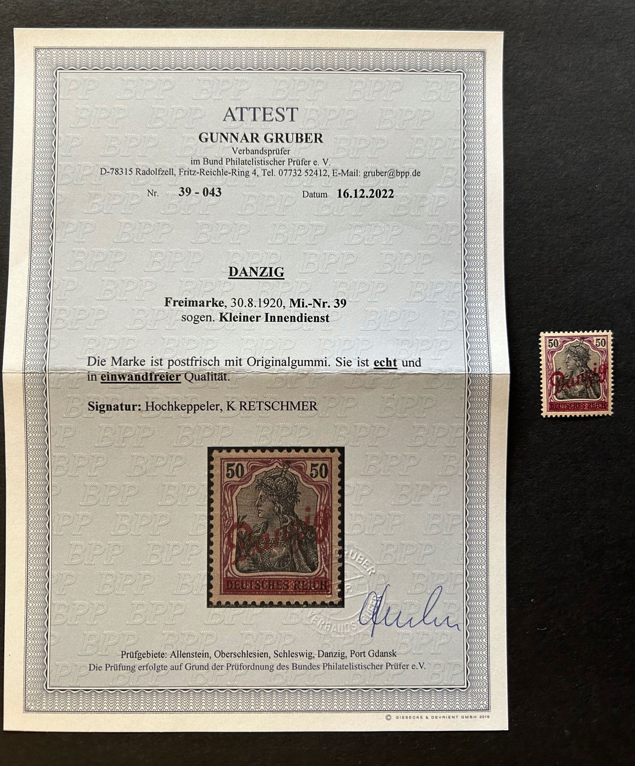 DANZIG - FI 39 ** - САМАЯ ДОРОГАЯ ЦЕНА ИЗ МАЛЕНЬКОЙ НЕНЕЕДИНСТВЕННОЙ СЕРИИ, В МАГАЗИНСКОМ СОСТОЯНИИ, КРАСИВАЯ ПОЛНАЯ ОРИГИНАЛЬНАЯ РЕЗИНА, ОДОБРЕНА Г-ном ГРУБЕРОМ - (НОВЫЙ GWR ИЛИ СООТВЕТСТВУЮЩИЙ ПО ЗАПРОСУ ПОКУПАТЕЛЯ И СТОИМОСТИ ПОСЛЕ АУКЦИОНА) - СТОИМОСТЬ КАТАЛОГА FISCHER, ТОМ II 2022 г. - 2500 злотых