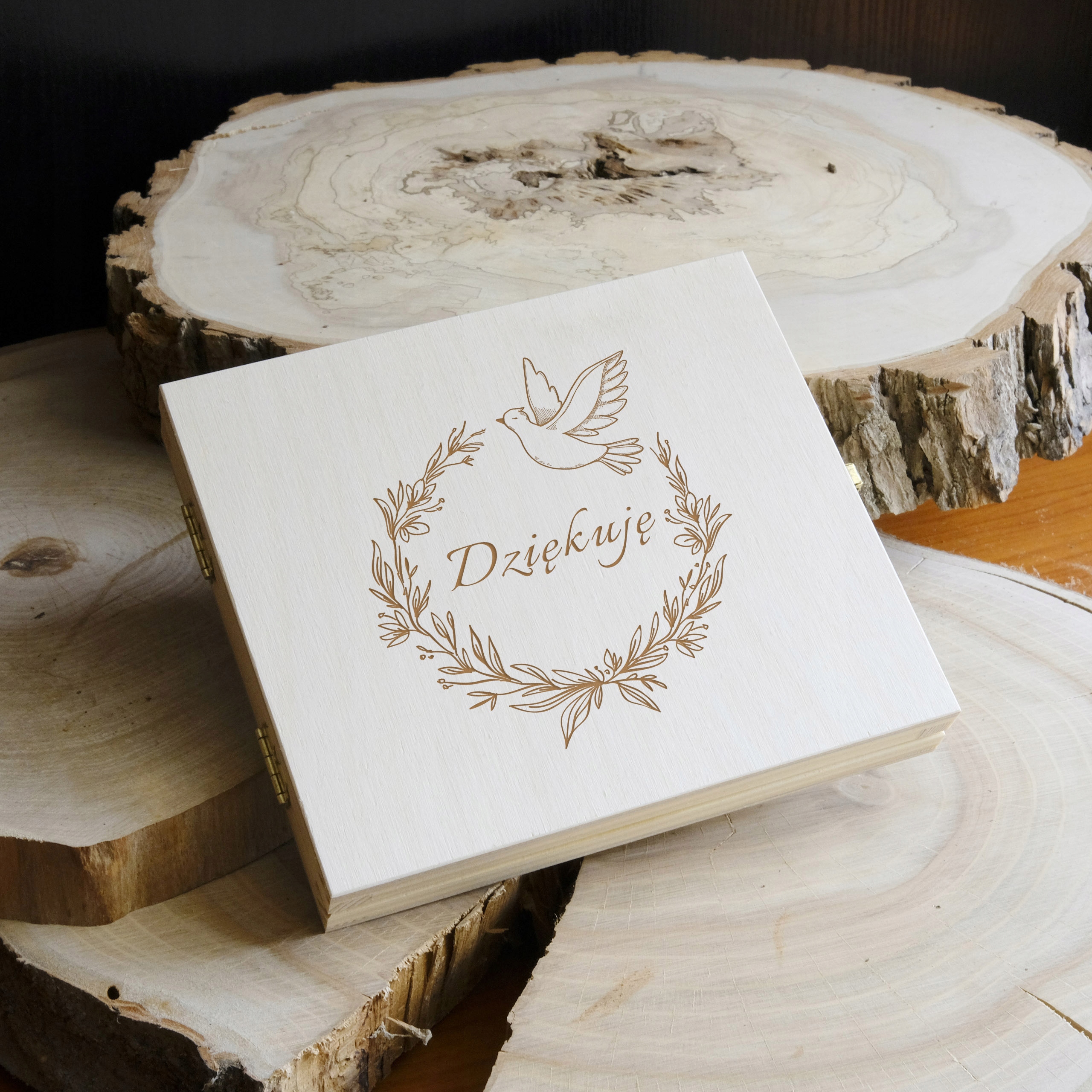 ✔️ Гравировка: нанесена на крышку коробки,