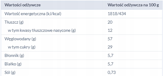 Состав: пшеничная мука (глютен), сахар, растительные жиры (пальмовый, подсолнечный, хлопковый, рапсовый, ши), сливочное масло (молоко), увлажнители (сорбит, глицерин), глюкозно-фруктозный сироп, какао-порошок с пониженным содержанием жира, какао тертое, яйца пастеризованные, пшеничная клетчатка, разрыхлители (бикарбонат аммония, бикарбонат натрия, дифосфат динатрия), сухое цельное молоко, ароматизаторы, соль, эмульгаторы (лецитины подсолнечника, фосфатиды аммония, полиглицерин полирицинолеат), шоколад; какао-масса минимум 49%, темный шоколад помимо какао-масла содержит растительные жиры