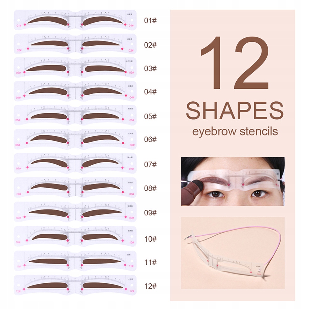 Dark Brown Stempla pomady brwi i 12 SET zestaw szablonów, Proszek do brwi