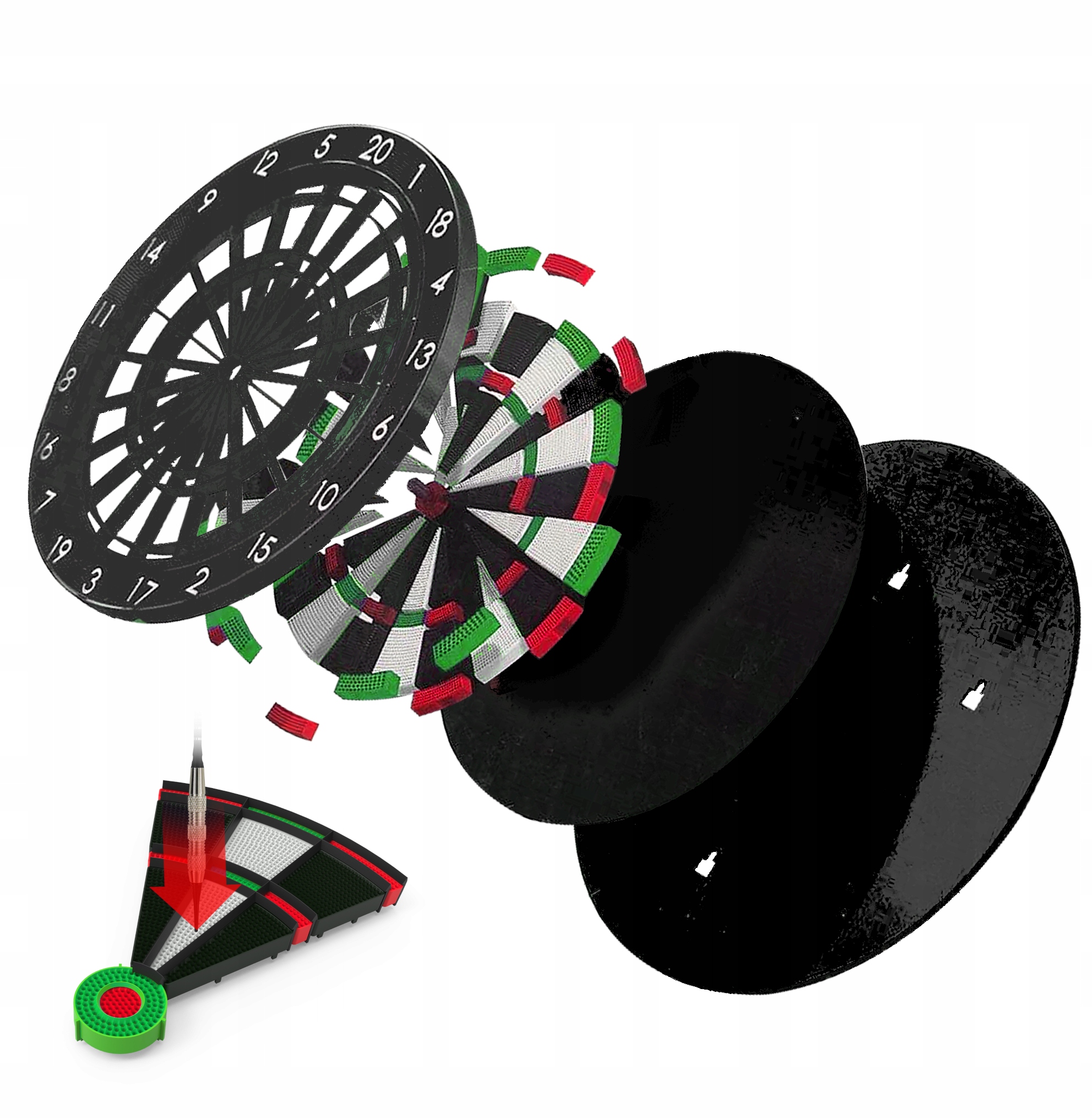 Очень важное улучшение по сравнению с более дешевыми заменителями. Скрытый под фольгой панели , толстая твердая защита, благодаря ей вы никогда не повредит дисплею при броске дротика!