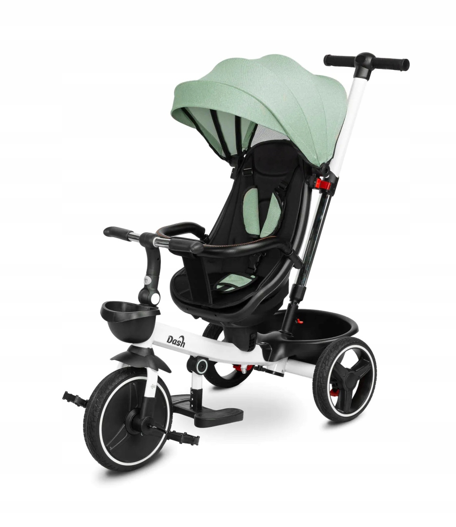 Трехколесный велосипед Dash — отличная альтернатива коляске. Его можно использовать как велосипед, на котором ребенок может кататься самостоятельно, так и как коляску с навесом, в которой ребенка можно перевозить как вперед, так и назад. В передней и задней части велосипеда имеются корзины, позволяющие перевозить мелкие предметы. Велосипед оснащен двумя подножками: выступающими из рамы велосипеда и прикрепленными к сиденью. Каждая подножка регулируется для комфорта вашего ребенка. Задние колеса велосипеда оснащены тормозами, что позволяет безопасно оставить велосипед, не беспокоясь, что он уедет сам.