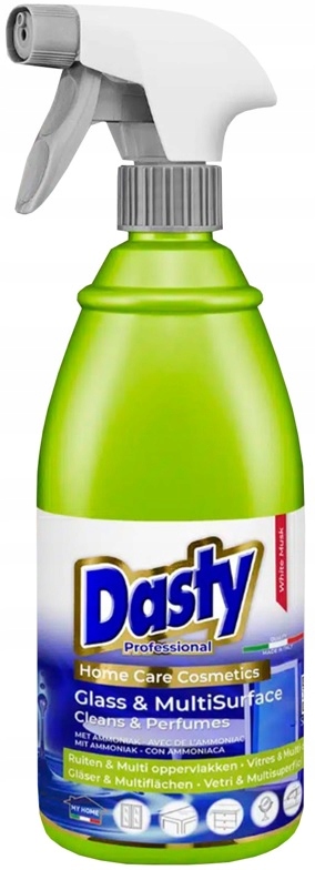 Жидкость для чистки окон, зеркал, хрусталя, автомобильных стекол, поверхностей из нержавеющей стали, мелкой бытовой техники и всех моющихся поверхностей. Благодаря наличию аммиака он также быстро и глубоко удаляет жирные загрязнения. Не требует смывания и не оставляет разводов. Идеально подходит для повседневного использования, распространяет вокруг очень приятный аромат. Dasty Glass & Multisurfaces с аммиаком – настоящее косметическое средство для вашего дома.