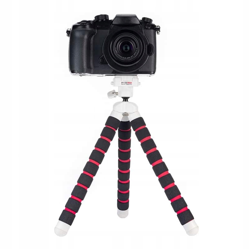 Spyder Tripod Pro имеет высоту 28 см и вес 56 г. Он очень универсален, а его функциональность расширяется за счет прилагаемых аксессуаров: держателя GoPro, держателя для телефона и универсального пульта дистанционного управления. использование Bluetooth для удаленного управления. Подставка рассчитана на устройства весом до 800 г.