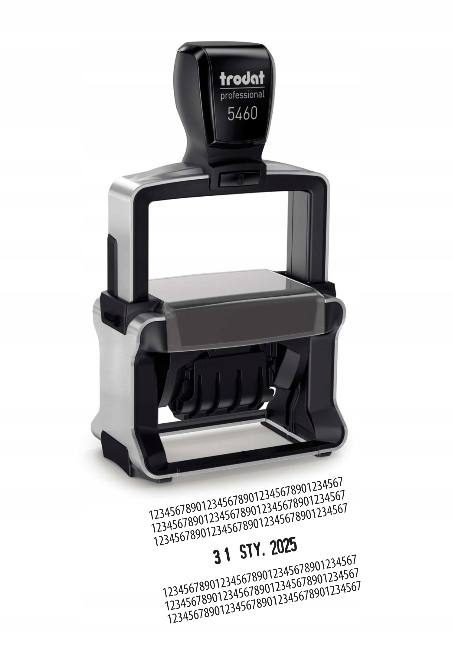 база данных высокого качества Trodat Professional 5460 с датой в польском формате с текстовой пластиной, максимум 6 строк текста, три выше, три под датой (больше шрифта означает меньшее количество стихов).