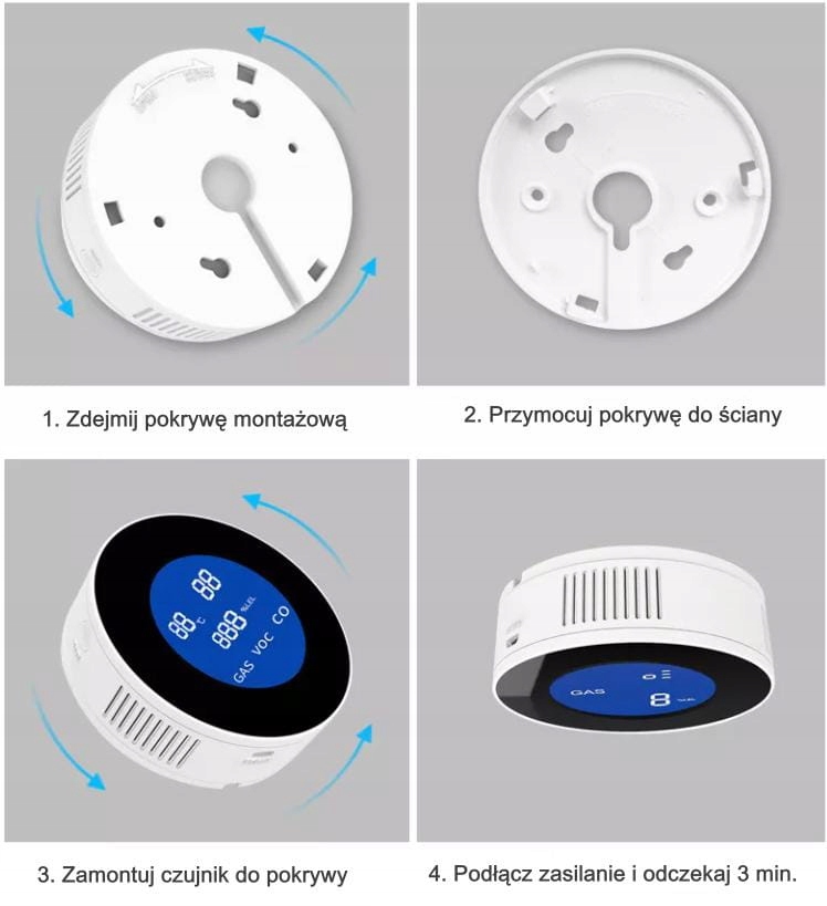 Обнаружение предполагает циклическое измерение содержания газа в воздухе. Обнаружение утечки газа сигнализируется оптически (светодиод), акустически (сирена 85 дБ) и дистанционной сигнализацией на мобильный телефон с помощью приложения Tuya Smart. Благодаря использованию полупроводникового газового сенсора мы можем быть уверены в высокой стабильности работы и длительном сроке службы сенсора.