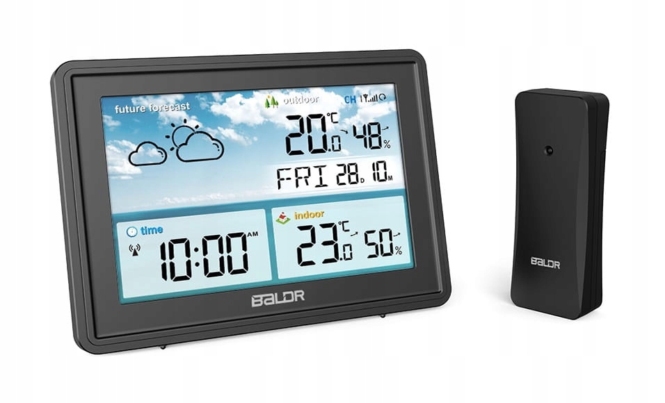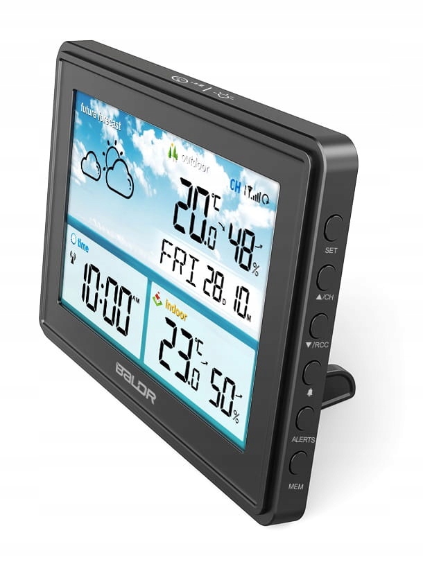 Беспроводная метеостанция Baldr B359- R z Функция оповещения о погоде: измеряет температуру в помещении и на улице, а также прогнозирует местный прогноз погоды, что делает ее идеальным выбором для получения точных измерений на большом, легко читаемом дисплее.