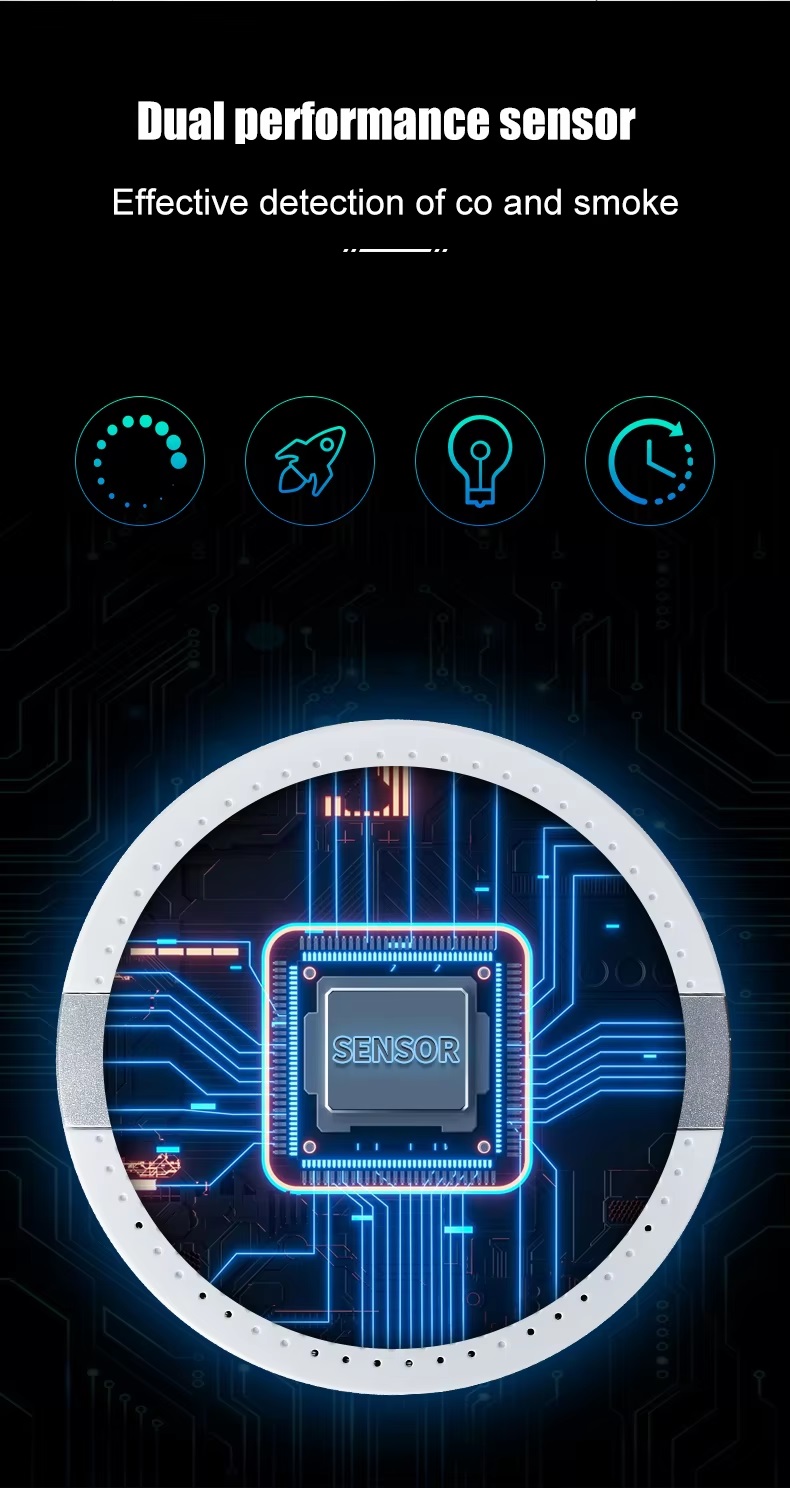 Этот домашний детектор дыма и угарного газа является новейшим продуктом, независимо разработанным нашей компанией, который использует высококачественный электрохимический датчик, сочетает в себе передовые электронные технологии и передовые технологии, а также интегрирует передовые науки и технологии.