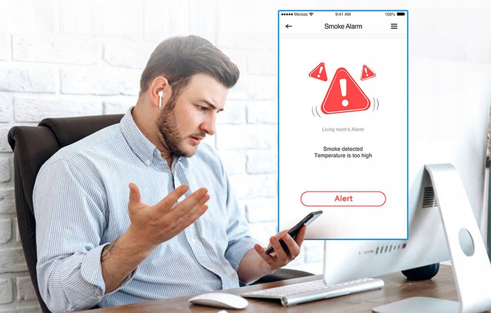 Когда температура превышает 54–70 ℃, детектор дыма Meross подает сигнал тревоги. Вам ничего не угрожает!