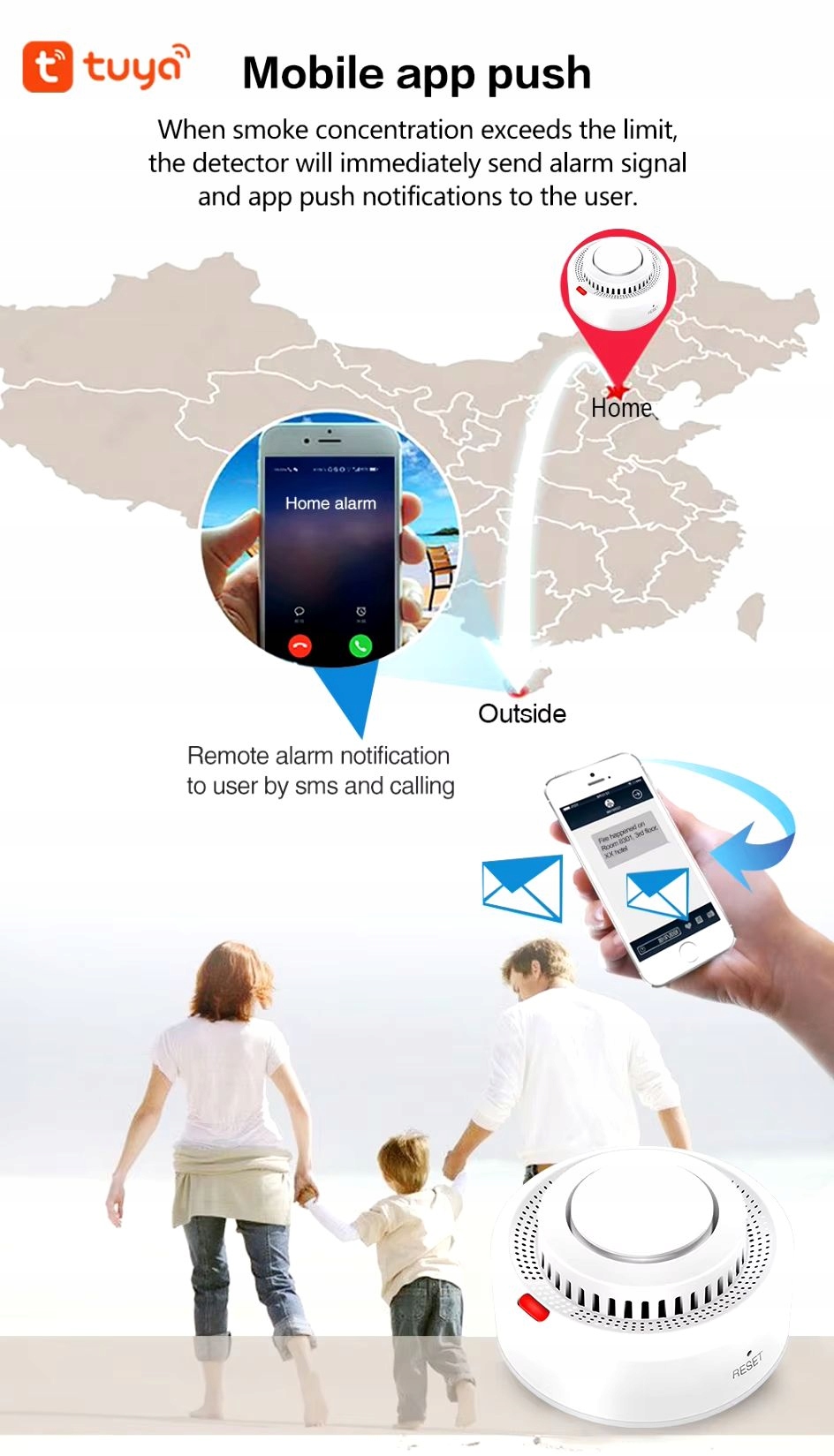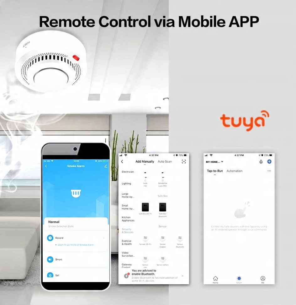 ✅ Wi -Fi Подключение: благодаря подключению Wi -Fi, вы можете легко интегрировать этот датчик дыма с существующей системой безопасности дома и управлять им удаленно, используя приложение Tuya и Smart Life.