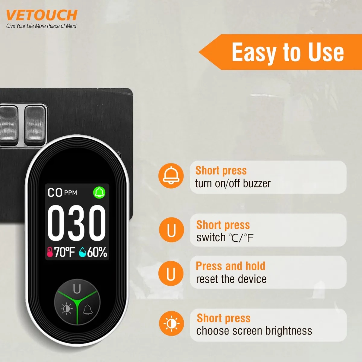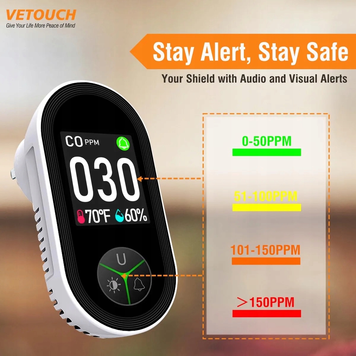 - Постоянно контролирует уровень угарного газа вокруг часов, обеспечивая раннее предупреждение и мир ваших близких. Бесцветный, окись углерода является смертельным, если он не обнаружен - лучшая защита - раннее предупреждение.
