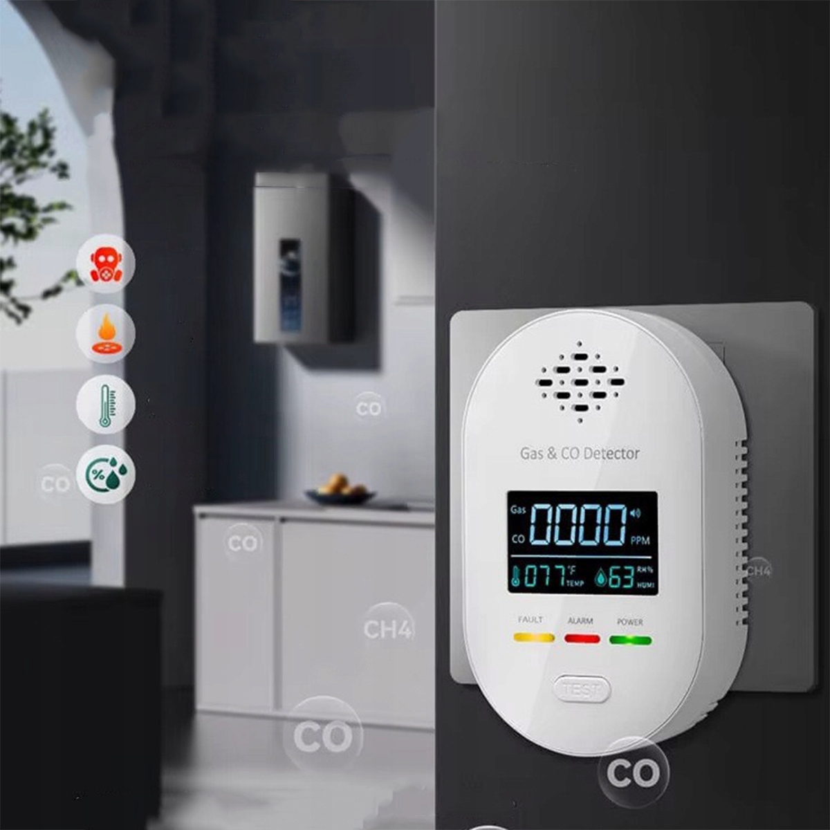 Датчик сигнализации природного газа, сжиженного нефтяного газа и угарного газа (CO) «4 в 1» с определением влажности и температуры, срок службы датчика 5 лет