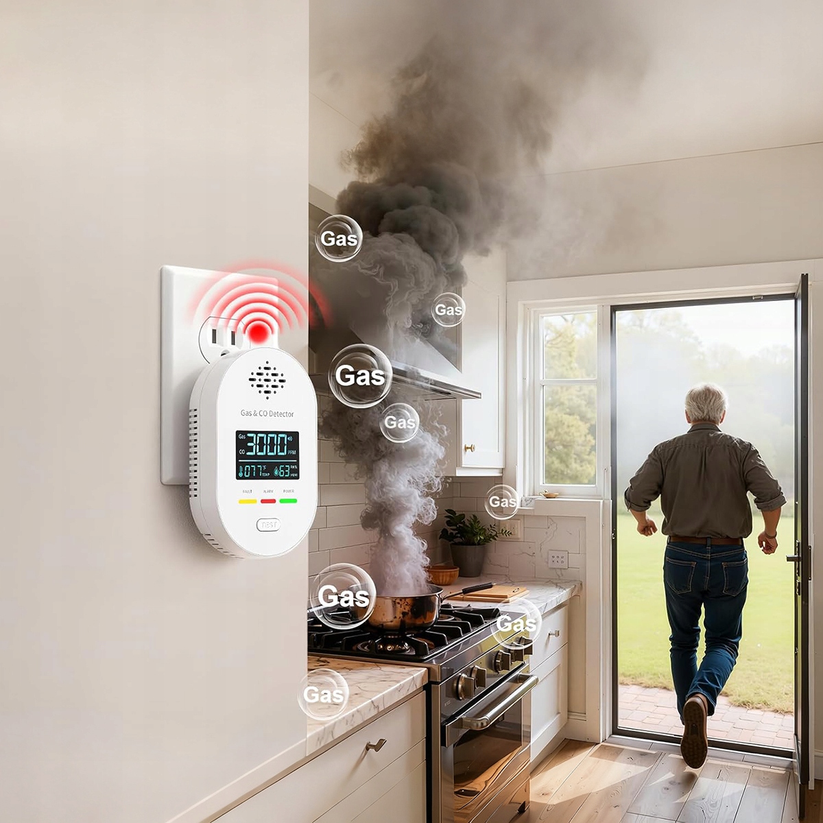 ✔Универсальная модель детектора угарного газа и газа с цифровым ЖК-дисплеем. Эта система предупреждает жителей при обнаружении угарного газа (CO) и других газов. Прибор постоянно контролирует концентрацию угарного газа и других газов в воздухе. Превышение допустимого уровня сигнализирует громкий звуковой сигнал и красный светодиод.
