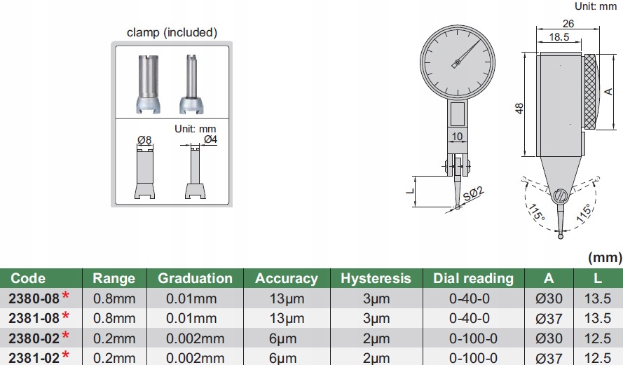 - длина измерительного рычага — 13,5 мм.