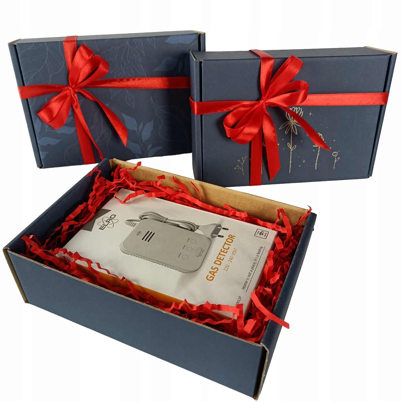 Подарочная коробка перевязана красной лентой. На коробке доступно два типа графики — цветочный или листовой мотив.