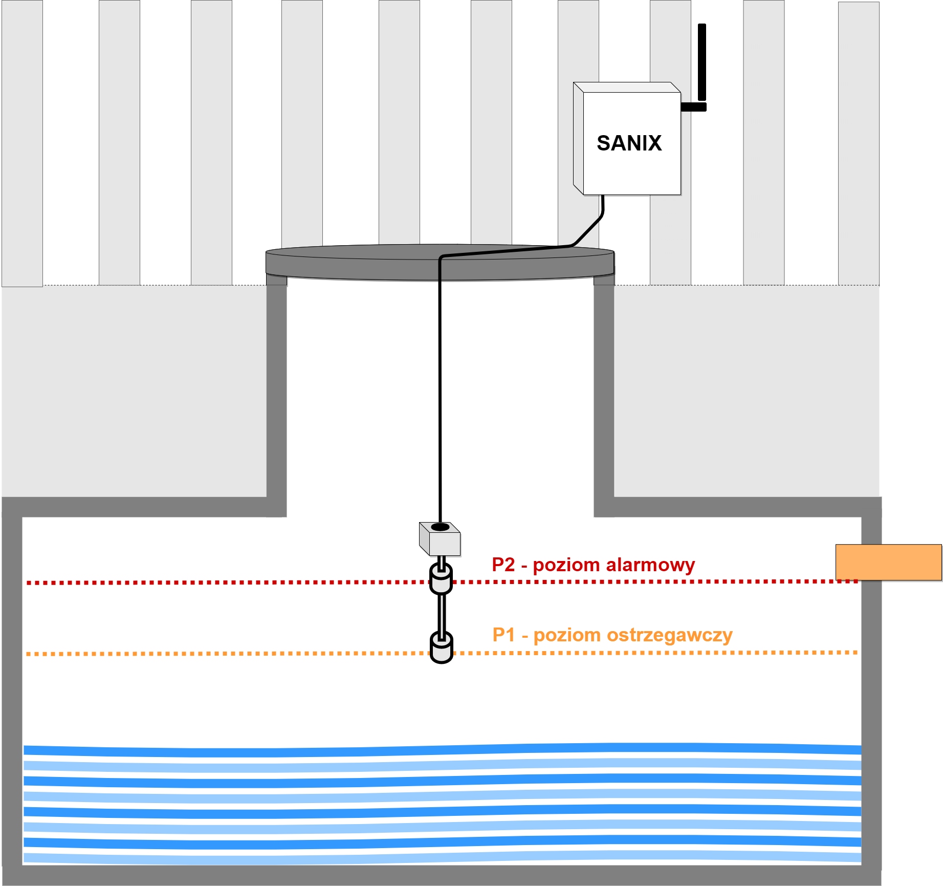Поплавковый датчик должен быть утоплен внутри резервуара (например, через камин) и подвешен на выбранном сигнализаторе. высота.