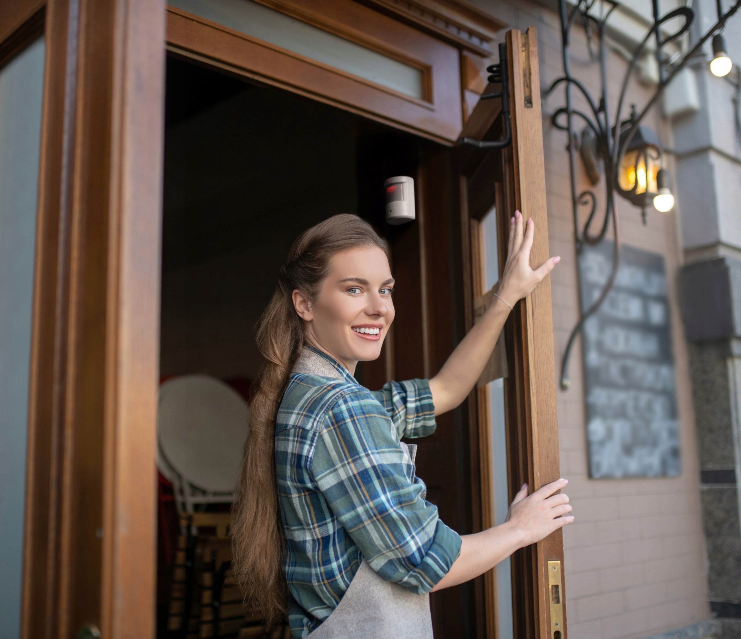 Датчик движения, позволяющий, например, управлять входной дверью. которые расположены в другом помещении или здании. Установка датчика движения снаружи здания позволяет контролировать движение в пределах его поля зрения. Комплект работает от батареек — никаких кабелей не требуется.