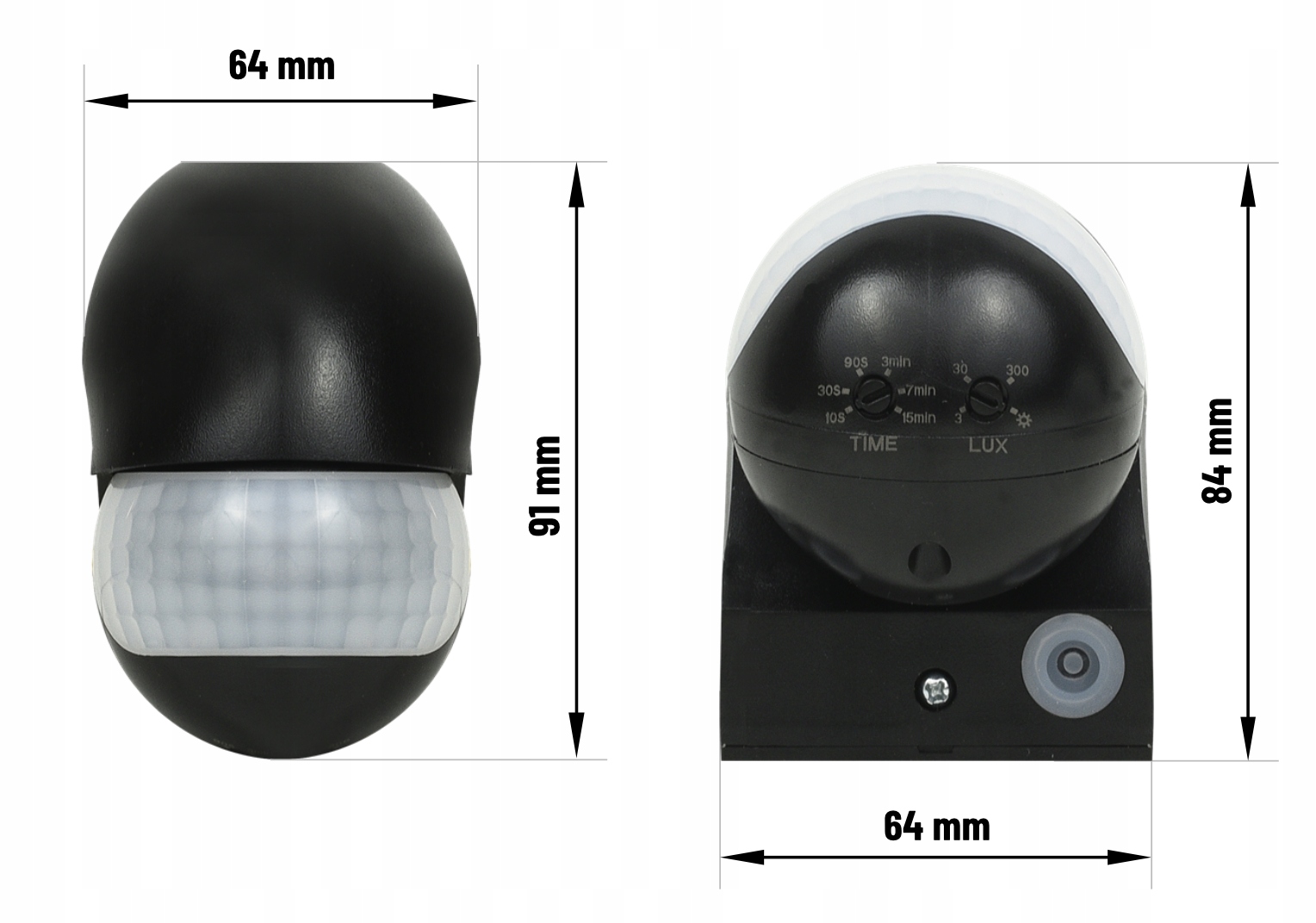 Датчик оснащен ретрансляционным датчиком движения, фотодиодом и регулировкой , который учитывает параметры, такие как: реакция, включающая время действия светового действия после обнаружения движения.