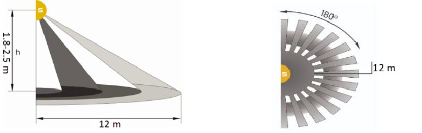 построен -в датчиках с обнаружением движения объектов в диапазоне более 12 метров, с высотой сборки от 1,8 м до 2,5 м.