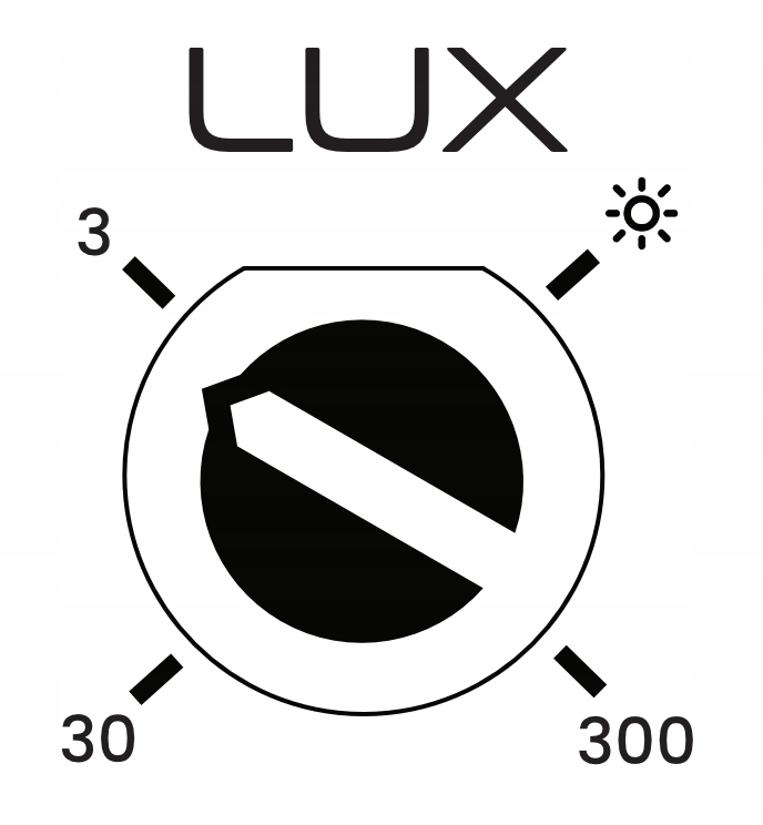 Регулирование устройства в зависимости от интенсивности среды. Датчик может реагировать в течение дня, когда он установлен в максимальном положении [2000 Lux] после установки до минимального значения [3 Lux], устройство будет активировано только в темноте. При настройке максимального значения - 2000 Lux, датчик будет активировать подключенное устройство как днем, так и ночью.