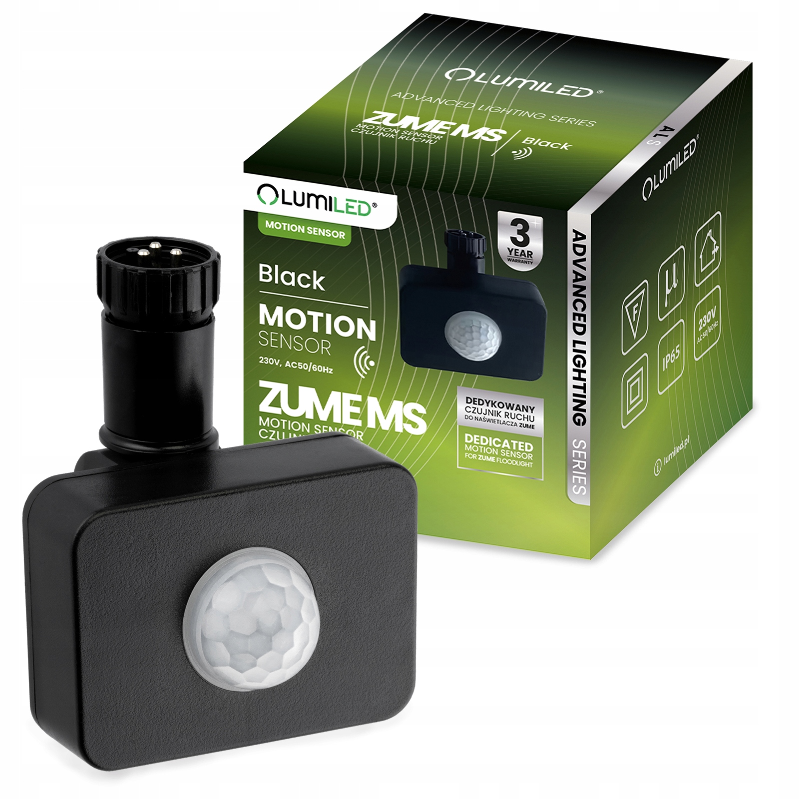 датчик движения Zume Датчик движения , авторитетный бренд освещения Lumiled , посвящен серии расширенного освещения . Он использует интеллектуальное обнаружение и реагирование технологии на движение, автоматически включаю и выключает свет после запрограммированного времени. Этот датчик имеет зону обнаружения 120 ° , и его время работы может быть отрегулировано в диапазоне от 10 секунд до 7 минут. Максимальное расстояние обнаружения трафика составляет 7 м.