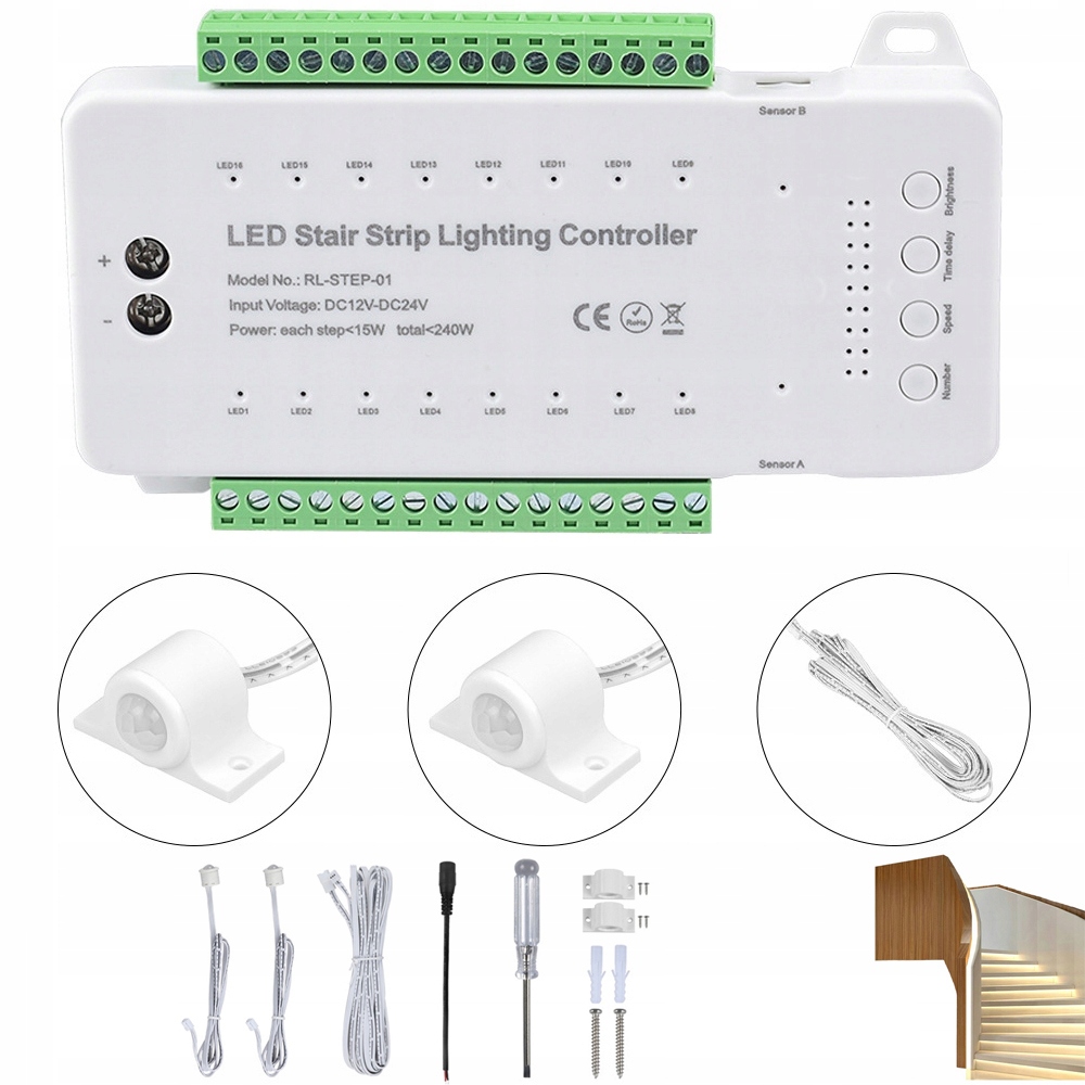 контроллер лестницы 16 Канал 12-24 В 240W 2 детекторы PIR
