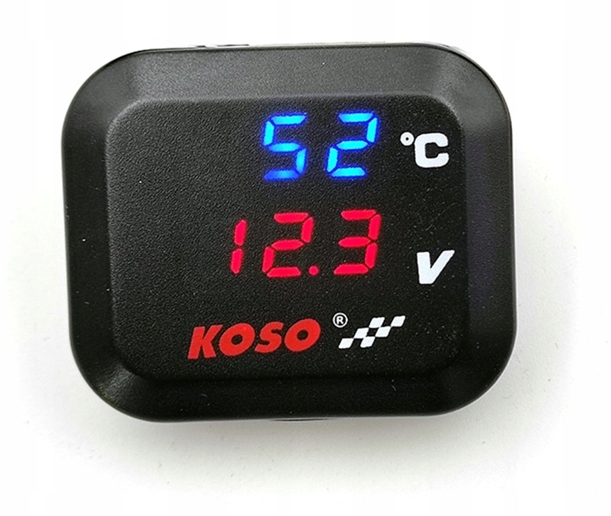 На дисплее KOSO достоверно отображается температура от 0 до 120 градусов Цельсия и напряжение питания от 0 до 19,9 В.