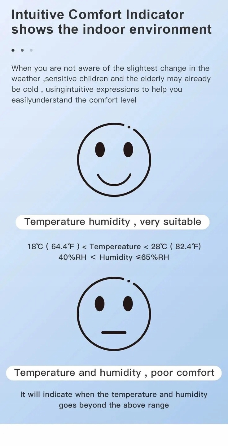 - Датчик обеспечивает точные показания влажности (±5%RH) и температуры (±1°C) в помещениях.