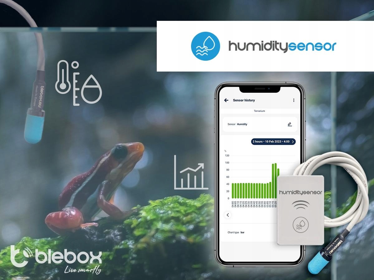 - Измеритель влажности и температуры для тропических растений в палюдариуме, виварии, террариуме: датчик температуры и влажности Датчик влажности BleBoxобеспечивает наилучший контроль условий жизни экзотических растений и животных в закрытых помещениях. Он помогает поддерживать необходимую влажность и температуру, чтобы растения и животные чувствовали себя комфортно и здорово.