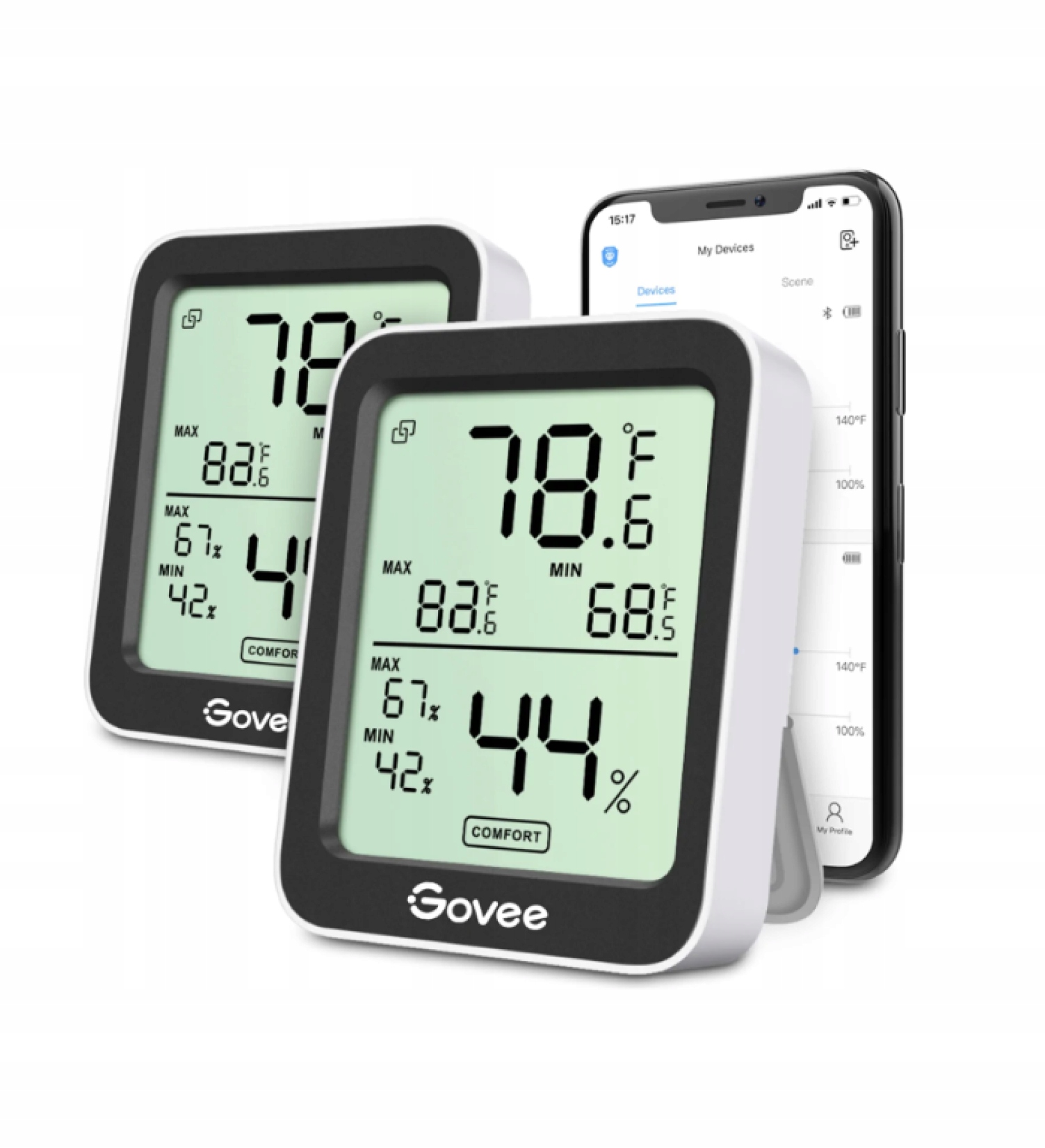 Отслеживайте температуру и влажность в любой комнате с помощью Govee термометр-гигрометр. Будьте в курсе данных о температуре и влажности в любое время.